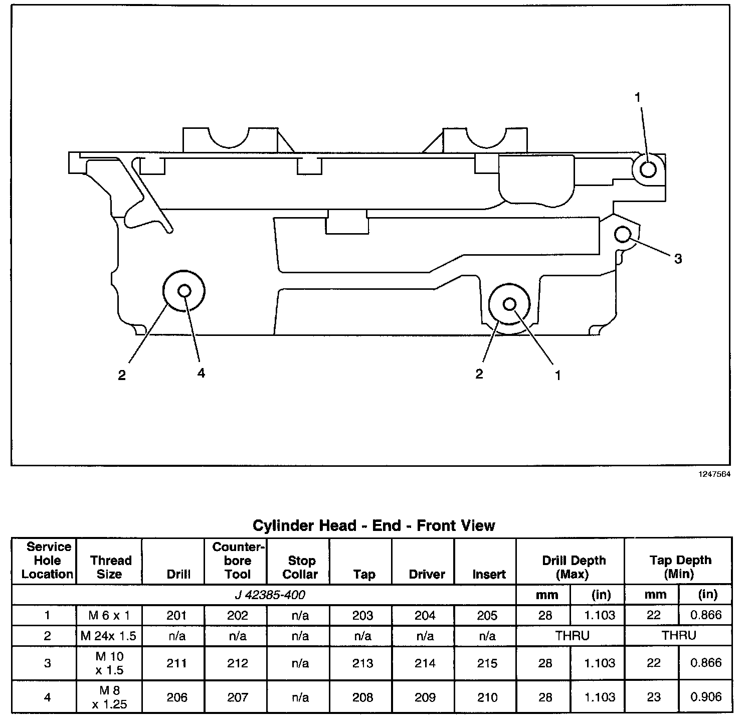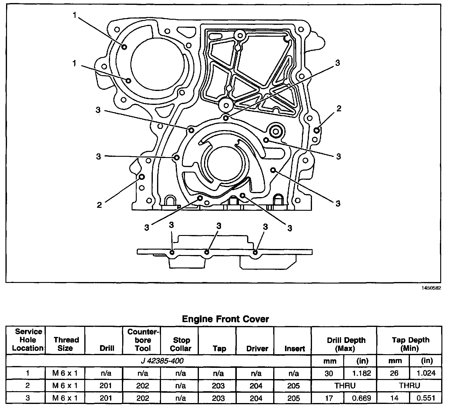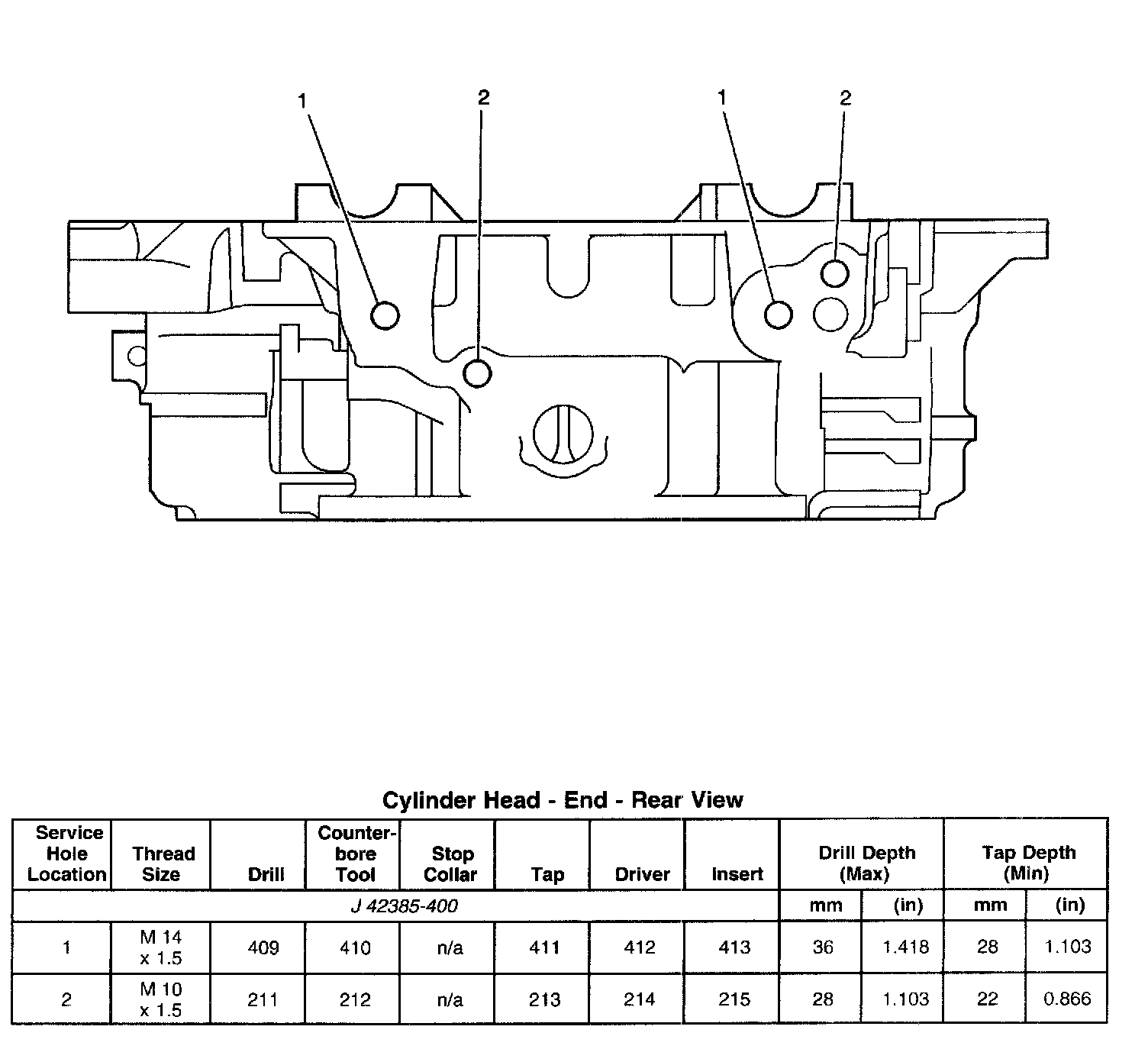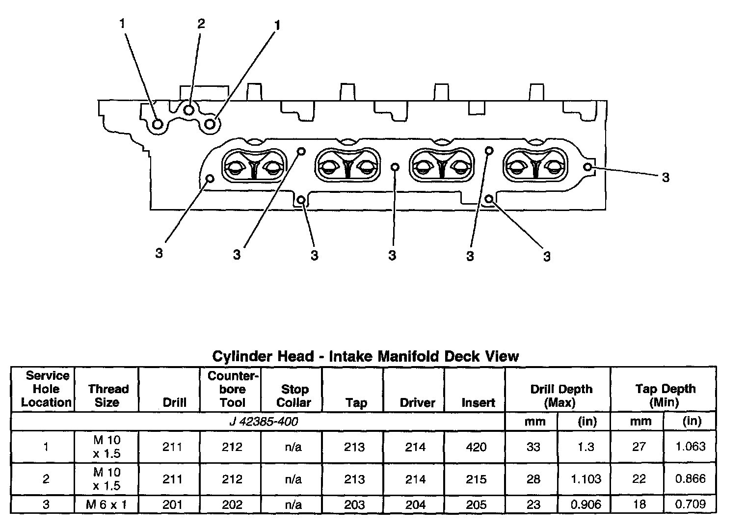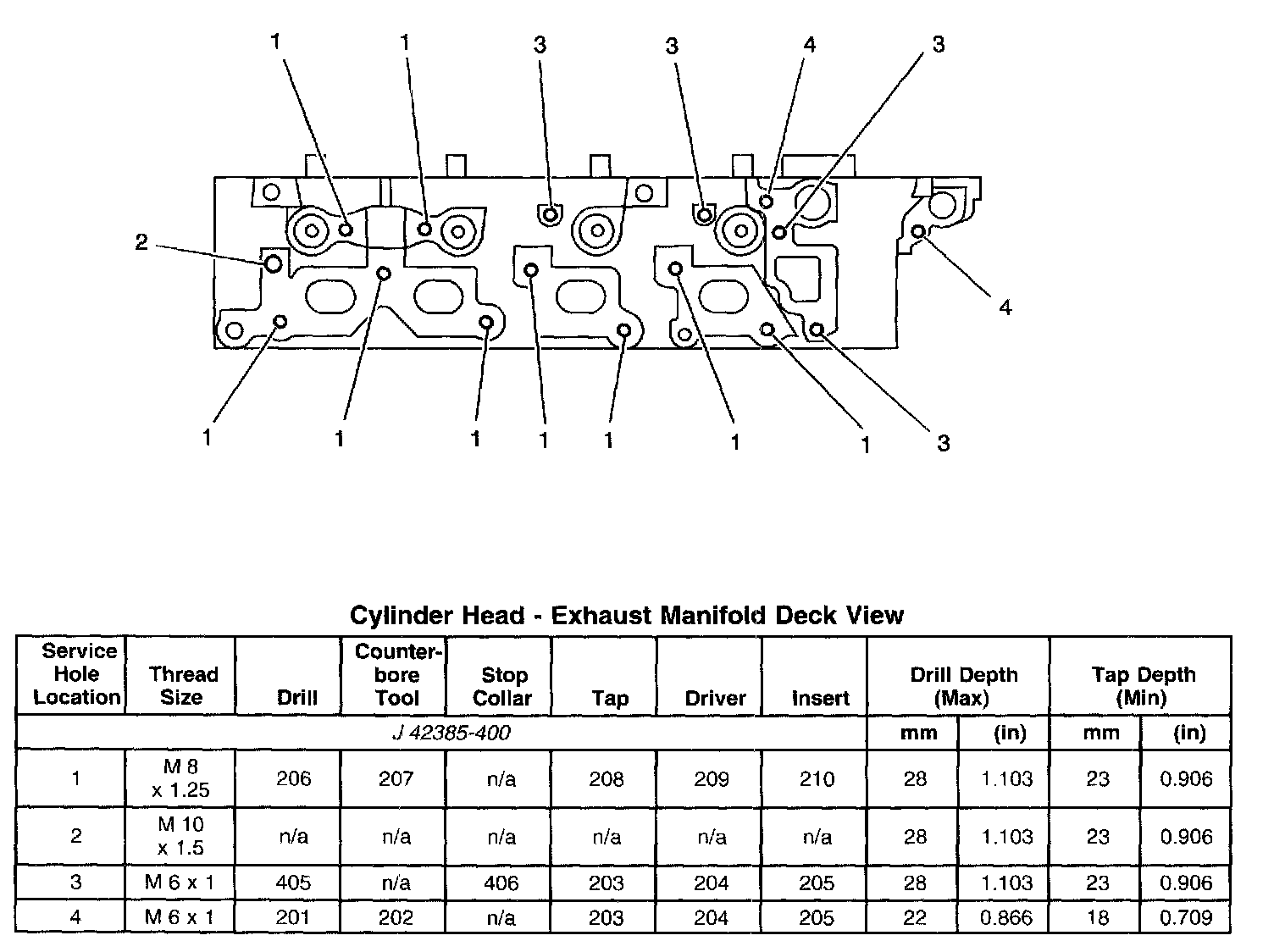 Thread Repair SpecificationsEngine Block - Top View