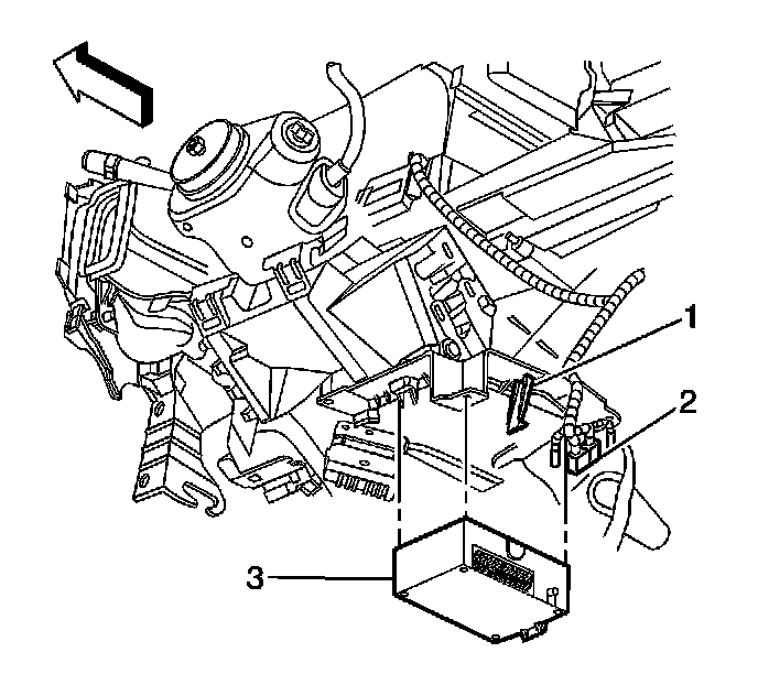3. Push in on the module (3) at the retaining tab (2) until an audible click is heard indicating the module is secured to the bracket.