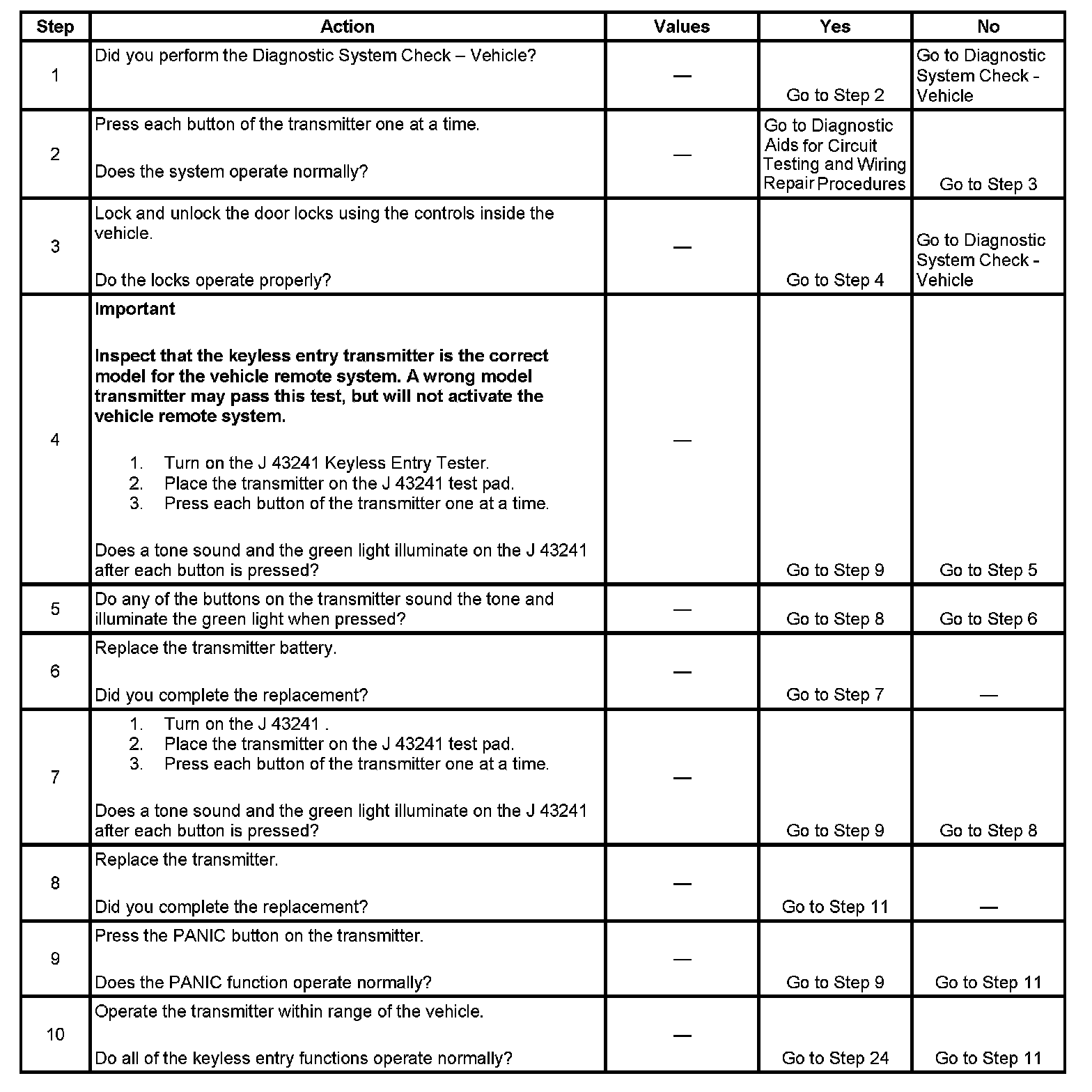 Keyless Entry System Inoperative