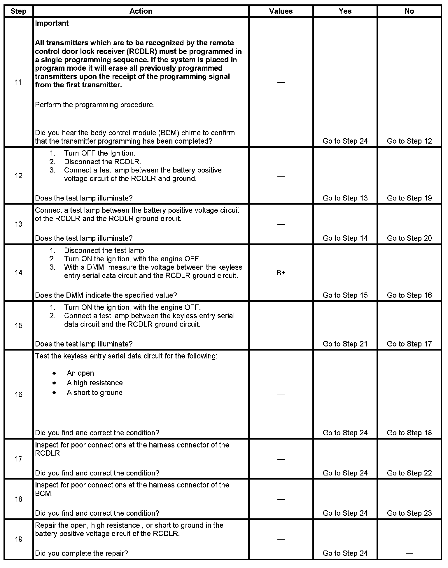 14. A DMM must be used in this step. A test lamp may give incorrect results, testing for B+ supply from the body control module (BCM).