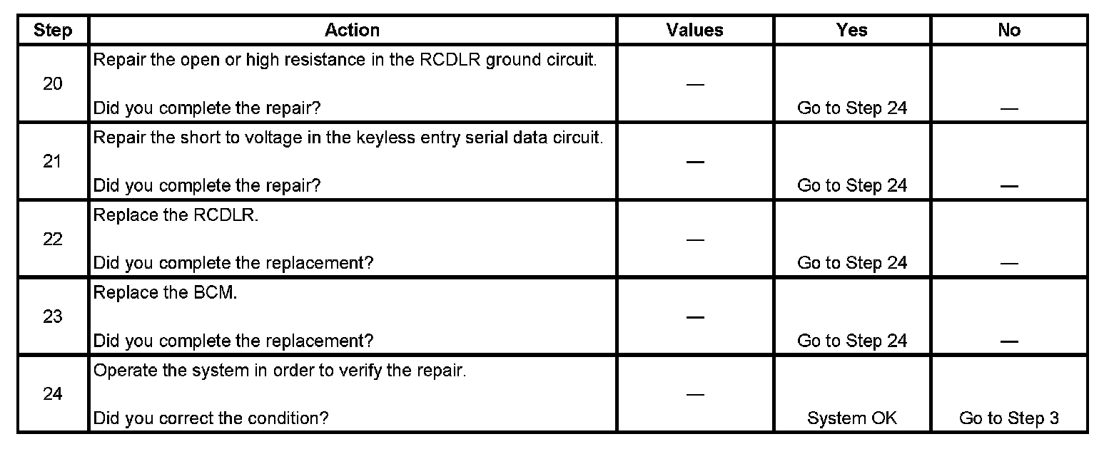 15. An illuminated test lamp at step 16 reveals a short to voltage in the serial data circuit.