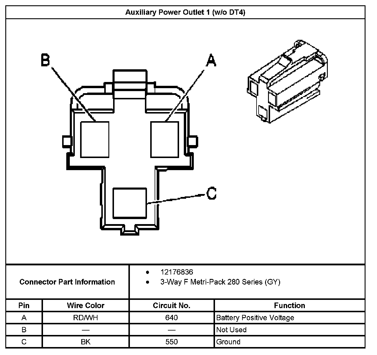 Auxiliary Power Outlet 1 (Without RPO Code DT4):