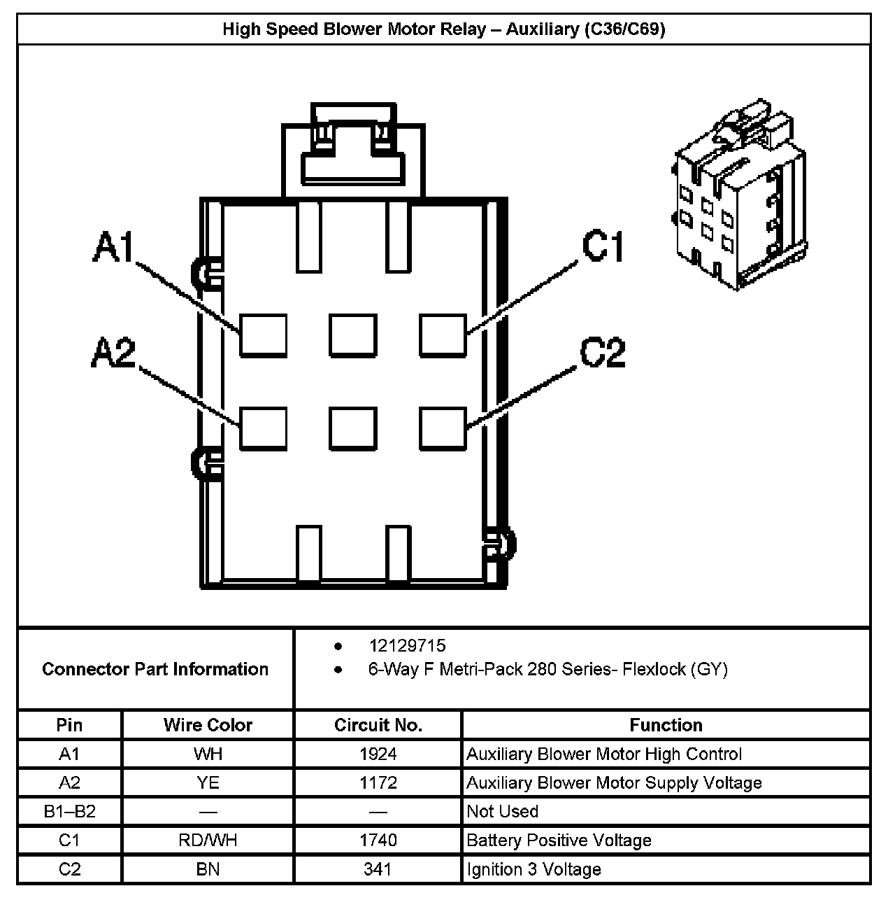 High Speed Blower Motor Relay - Auxiliary (With RPO Code C36/C69):