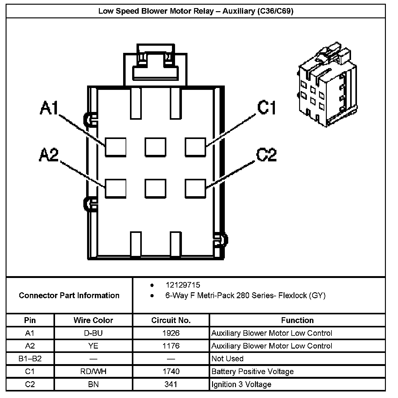 Low Speed Blower Motor Relay - Auxiliary (With RPO Code C36/C69):