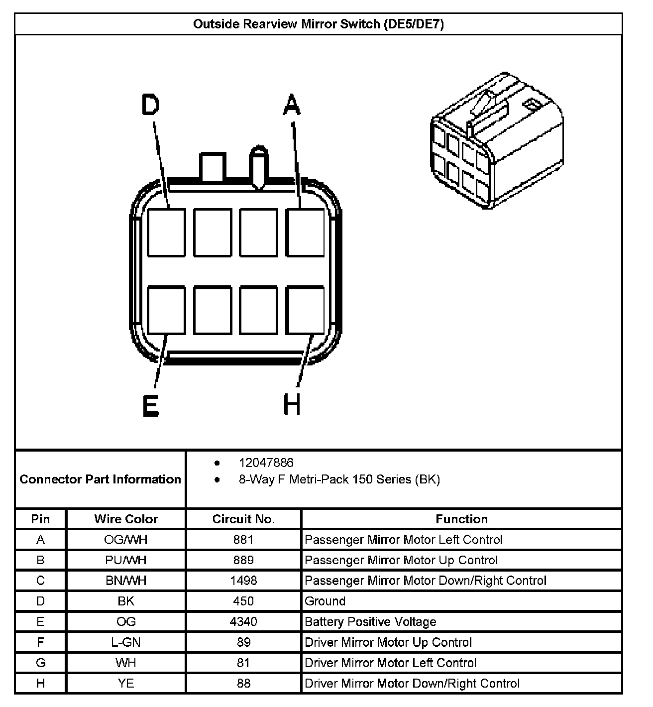 Outside Rearview Mirror Switch (With RPO Code DE5/DE7):