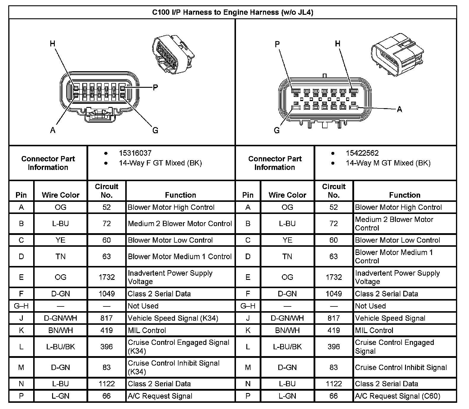 C100 I/P Harness To Engine Harness (Without RPO Code JL4):