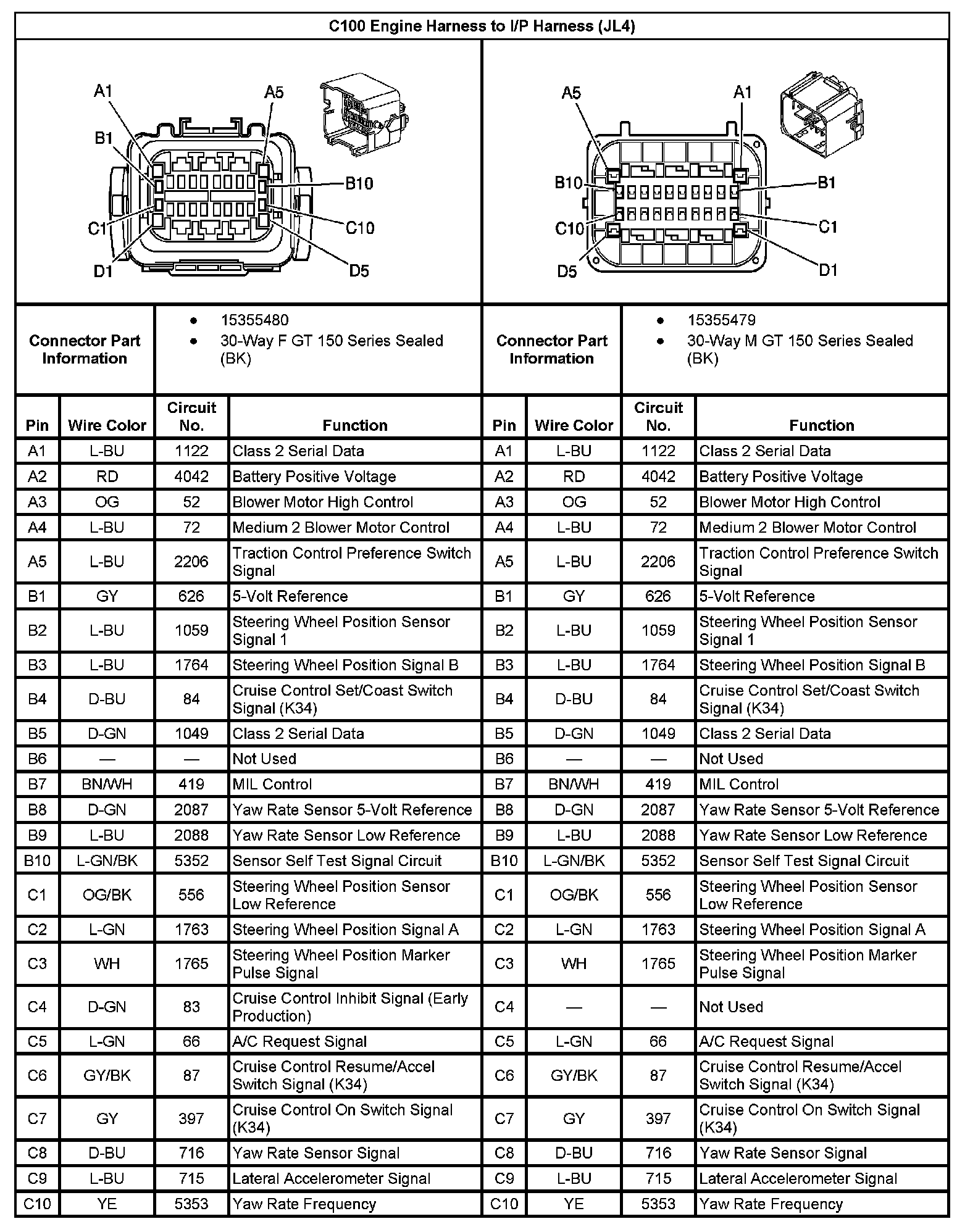 C100 Engine Harness To I/P Harness (With RPO Code JL4) Part 1: