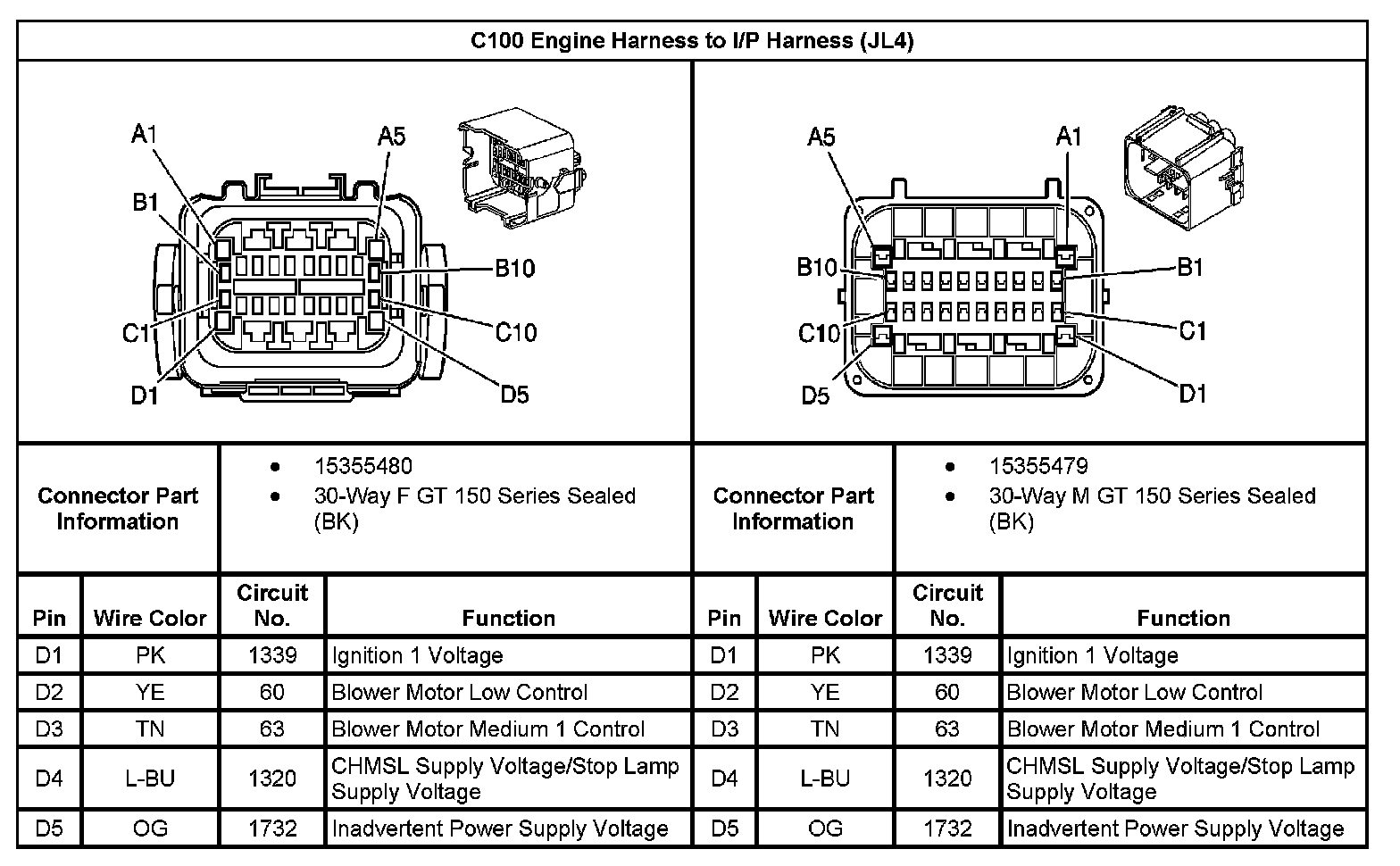 C100 Engine Harness To I/P Harness (With RPO Code JL4) Part 2: