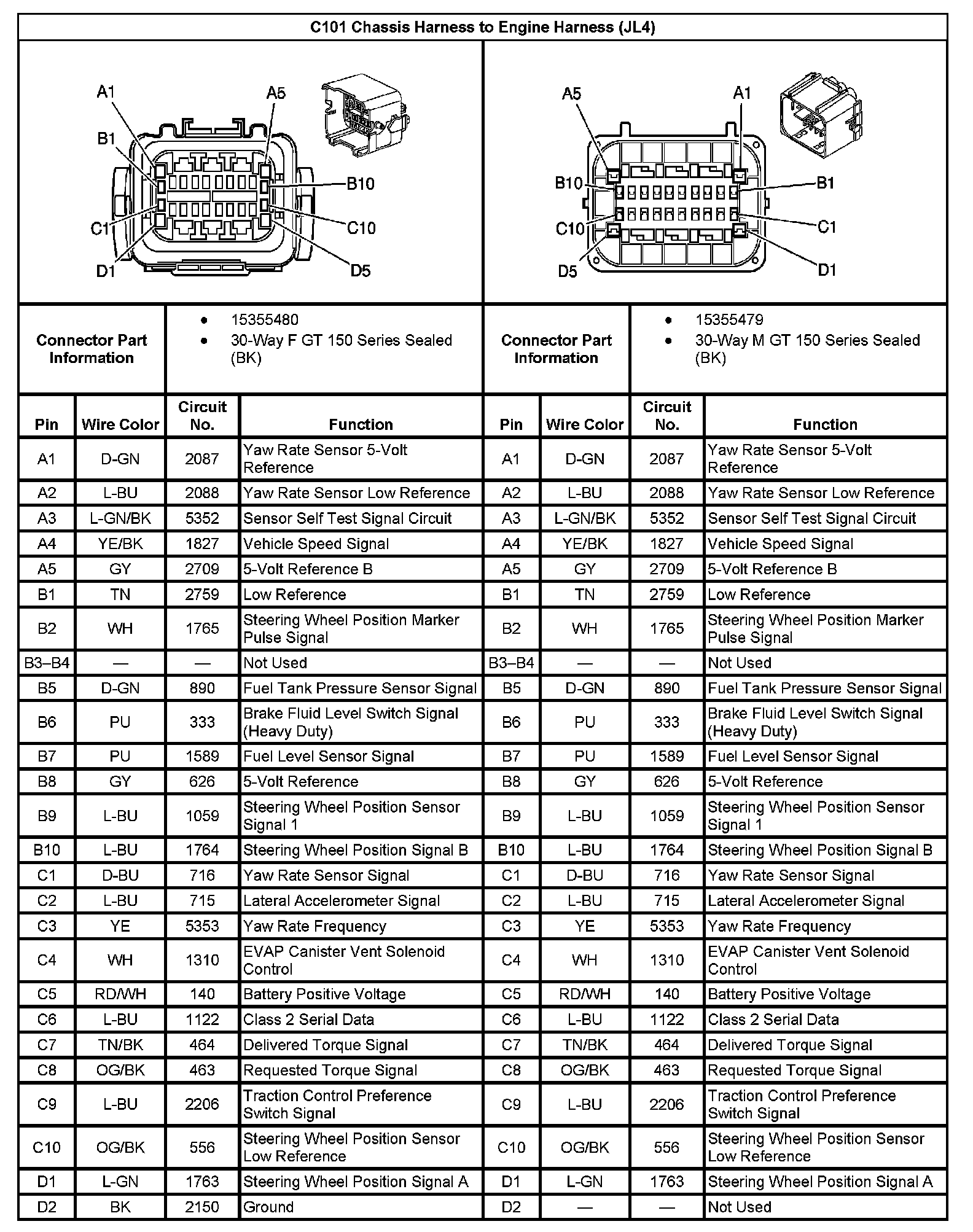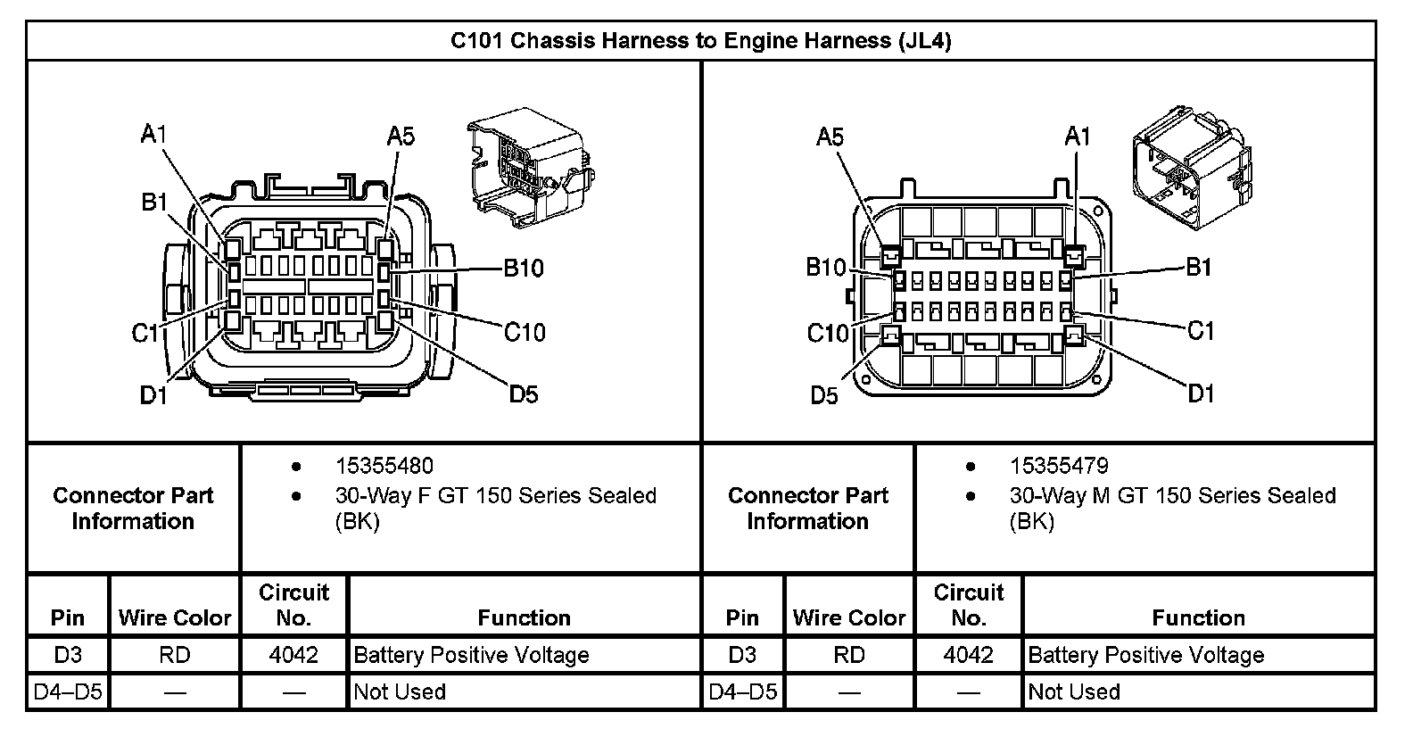 C101 Chassis Harness To Engine Harness (With RPO Code JL4) Part 1: