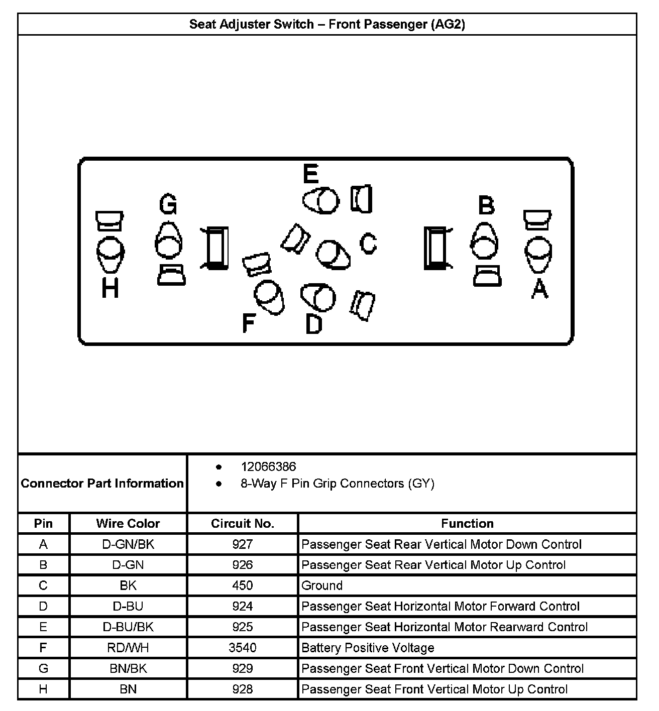 Seat Adjuster Switch - Front Passenger (With RPO Code AG2):