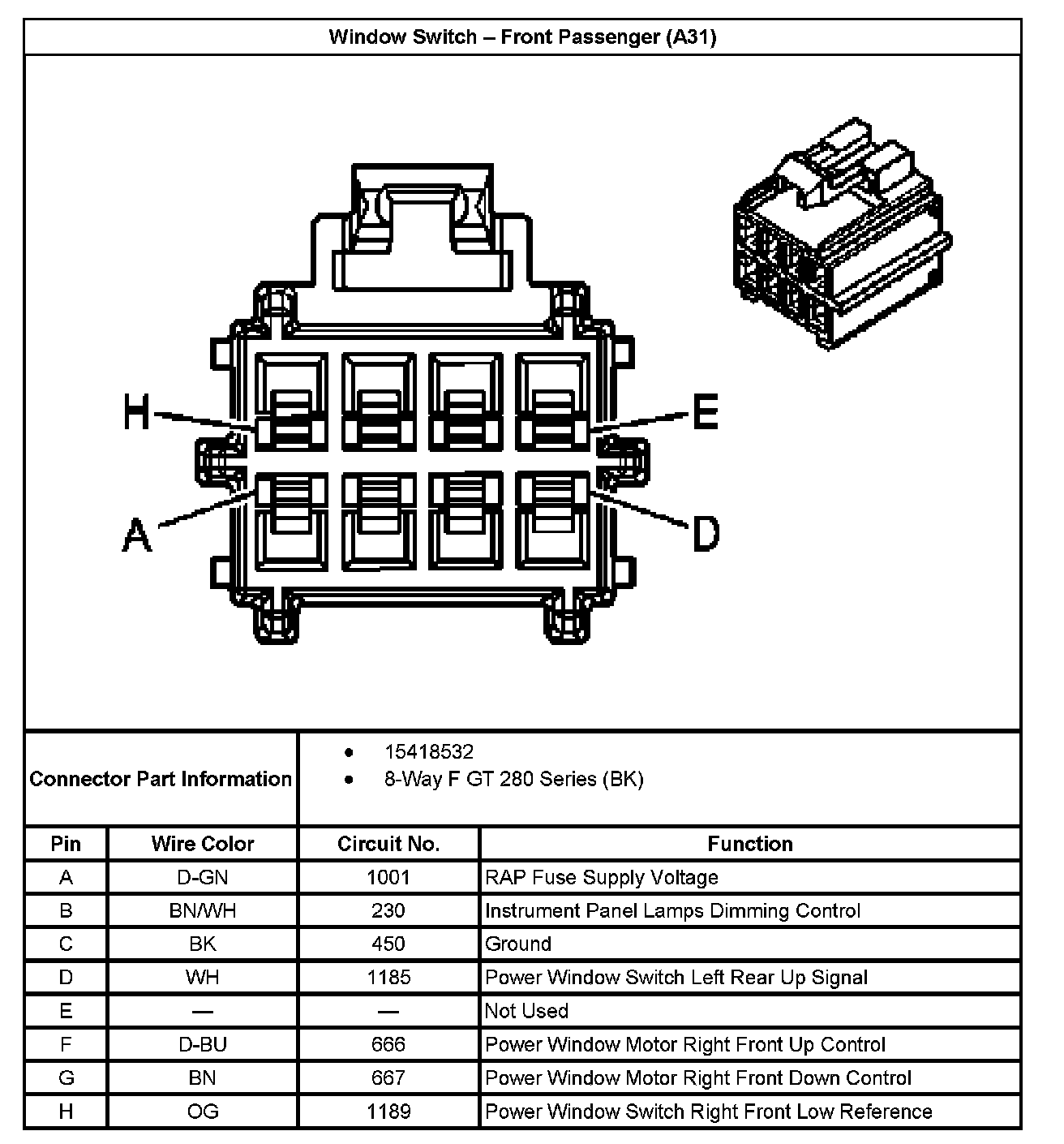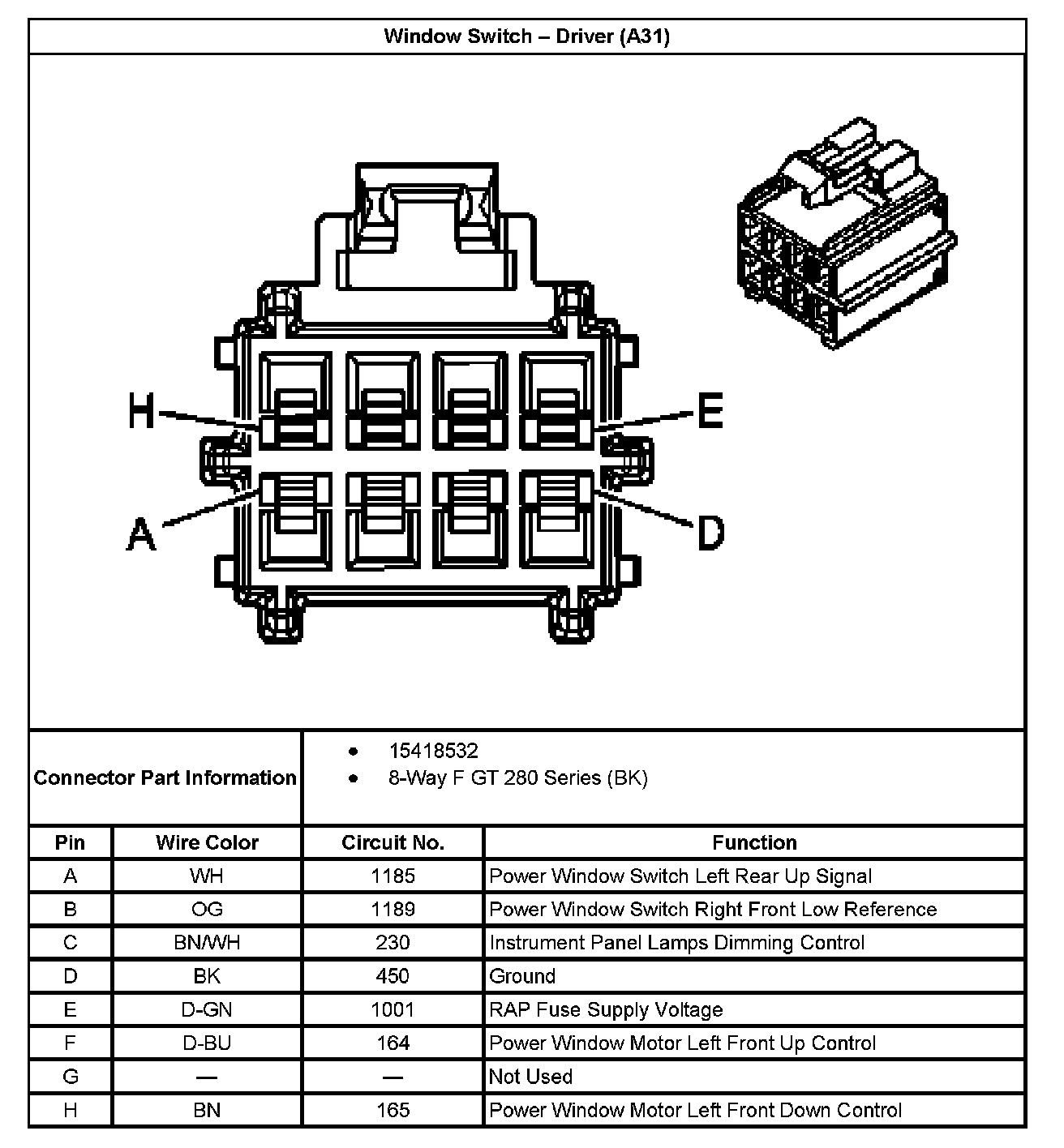 Window Switch - Driver (With RPO Code A31):