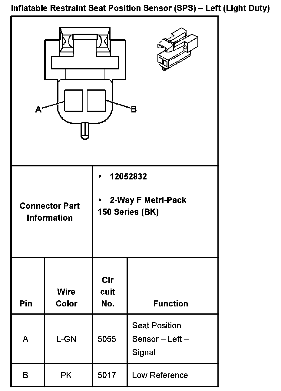 Inflatable Restraint Seat Position Sensor (SPS) - Left (Light Duty):