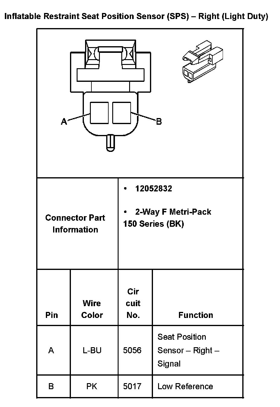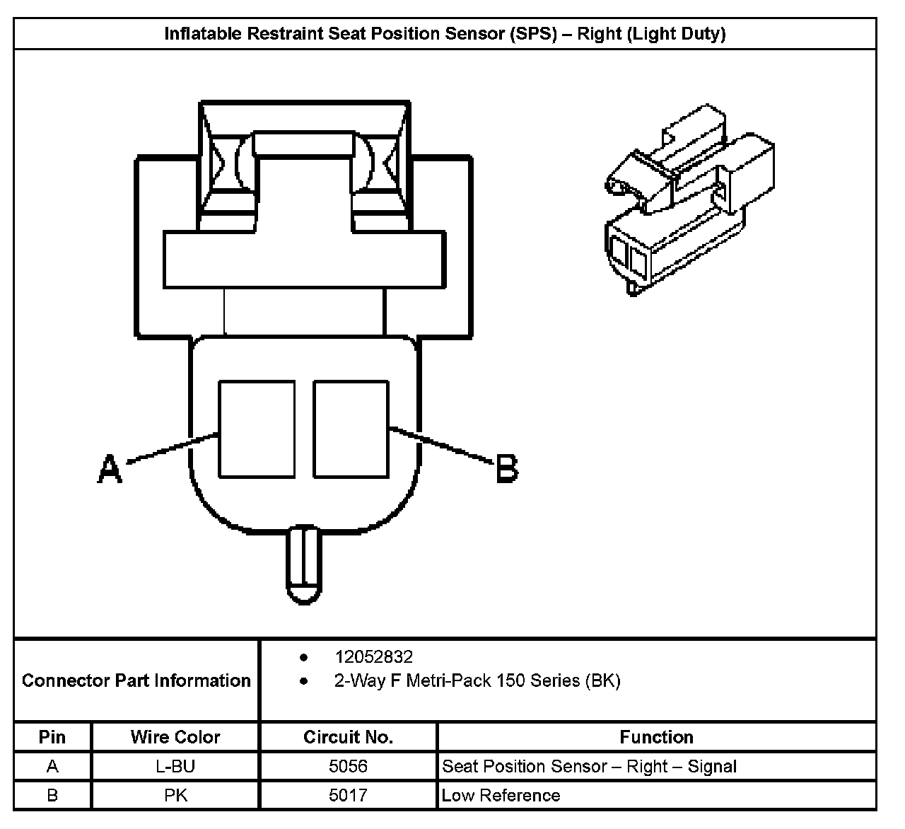 Inflatable Restraint Seat Position Sensor (SPS) - Right (Light Duty):