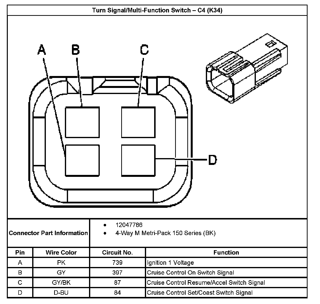 Turn Signal/Multifunction Switch - C4: