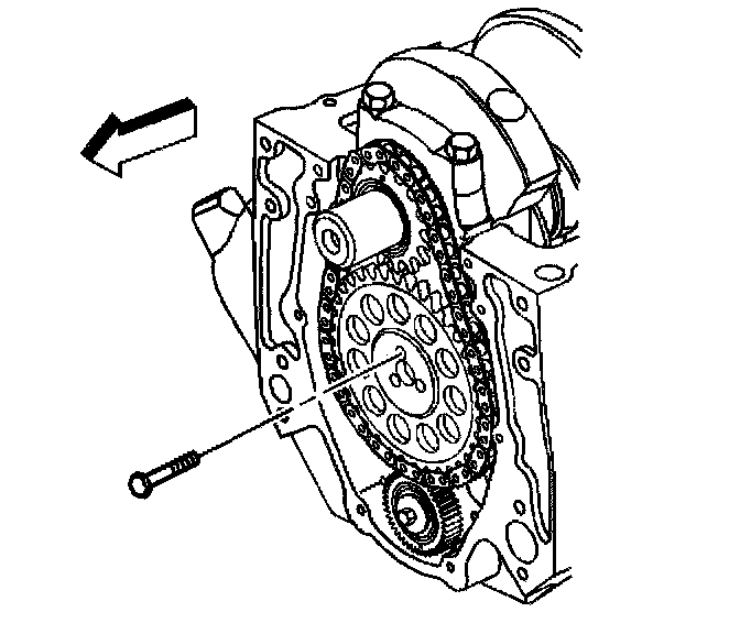 Notice: Align the timing marks before removing the timing chain. If it is necessary to turn either the camshaft or the crankshaft with the timing chain removed, loosen or remove the valve rocker arms. Turning either the crankshaft or camshaft with the timing chain removed may cause the pistons to contact the valves, resulting in damage.