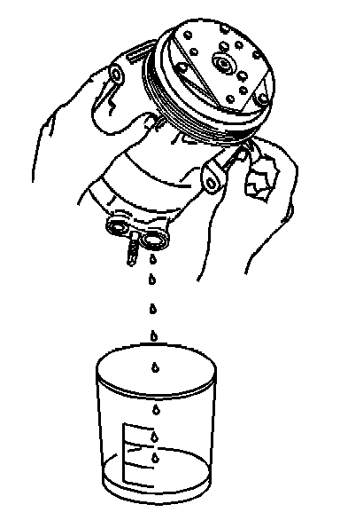 1. Drain the oil from both the suction and discharge ports of the removed compressor into a clean, graduated container.