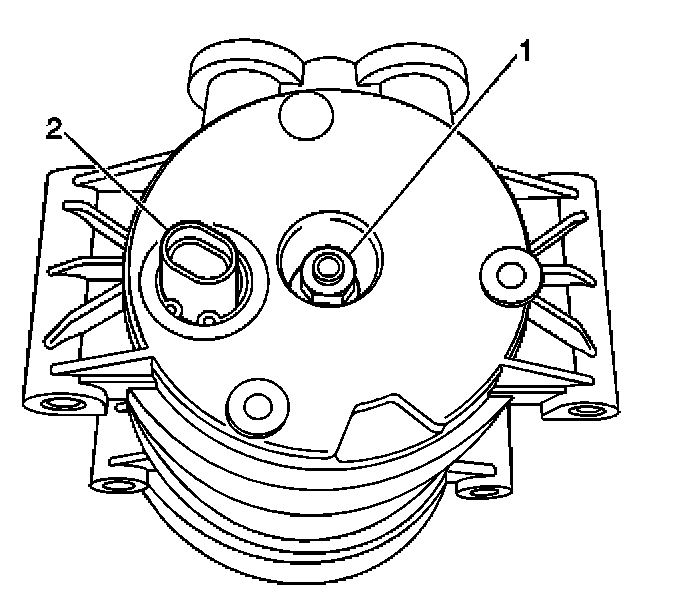 7. Connect the A/C high pressure switch electrical connector (2) to the compressor.