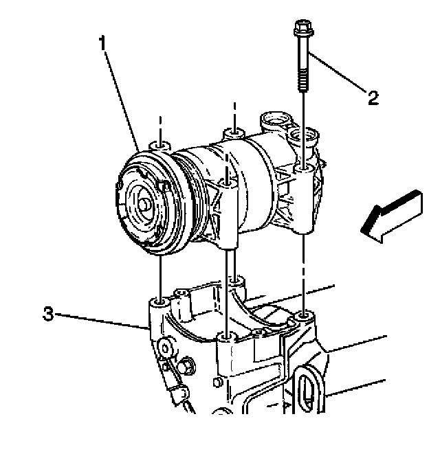 2. Install the compressor retaining bolts to the mounting bracket.