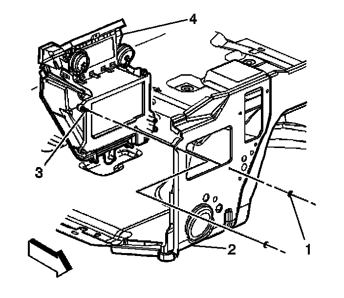 2. Remove the heater assembly retaining nuts (1) from the engine compartment.