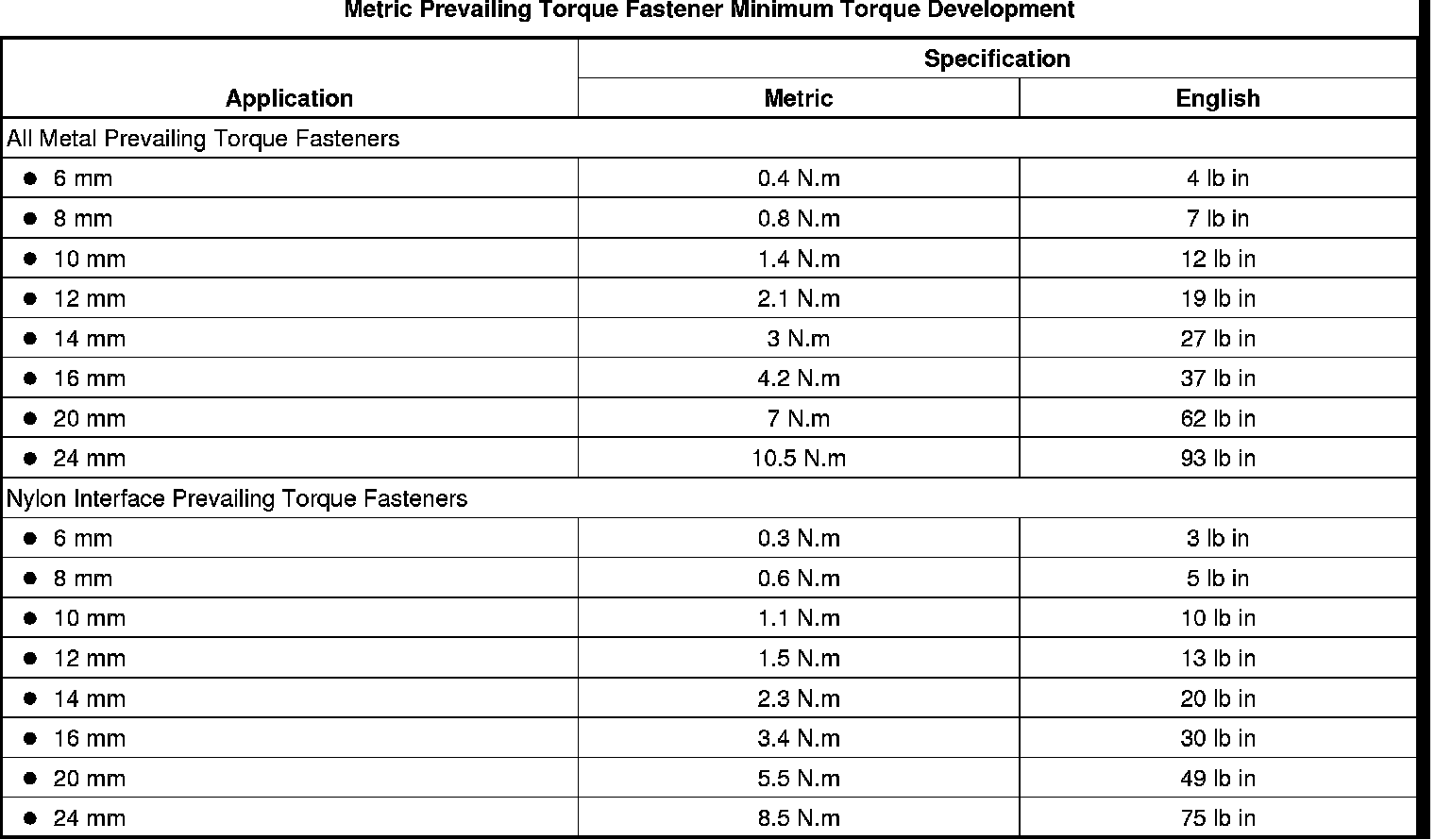 The metric fasteners on GM products are designed to new, international standards. The following are the common sizes and pitches, except for special applications:
