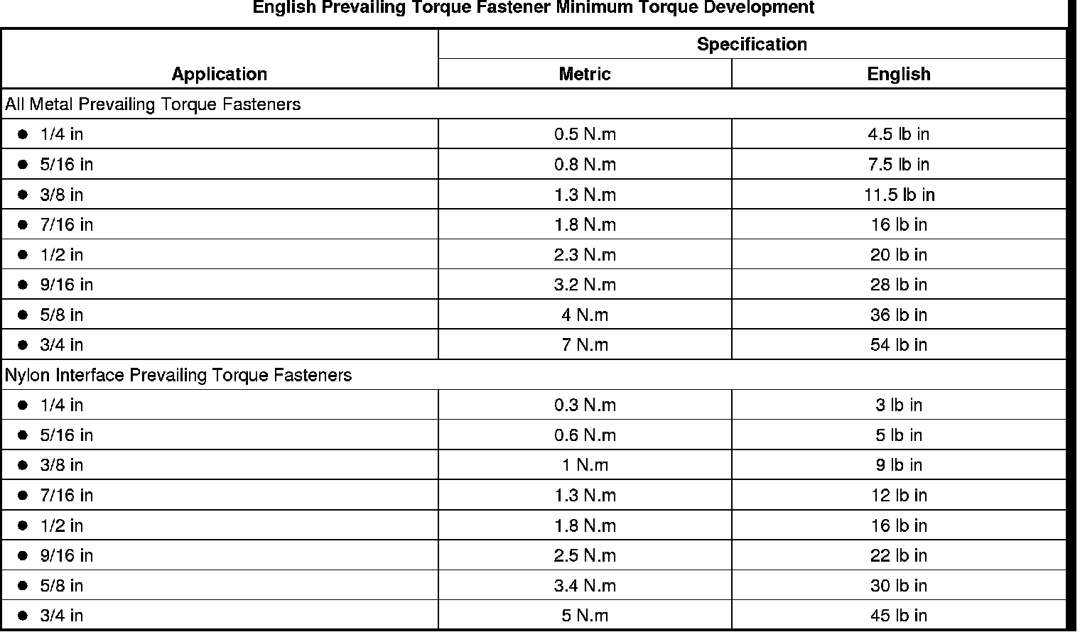 This vehicle provides fastener dimensions using the metric system. Most metric fasteners are approximate in diameter to equivalent English fasteners. Make replacements using fasteners of the same nominal diameter, thread pitch, and strength.
