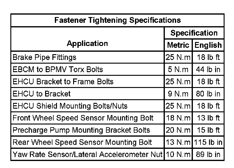 Fastener Tightening Specifications: