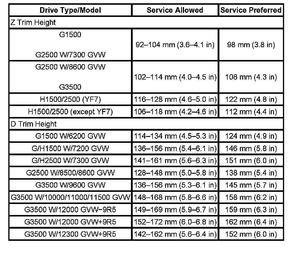 Trim Height Specifications