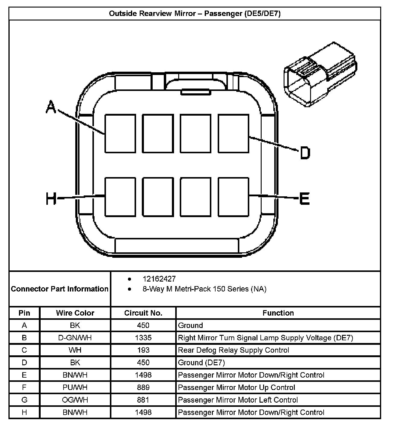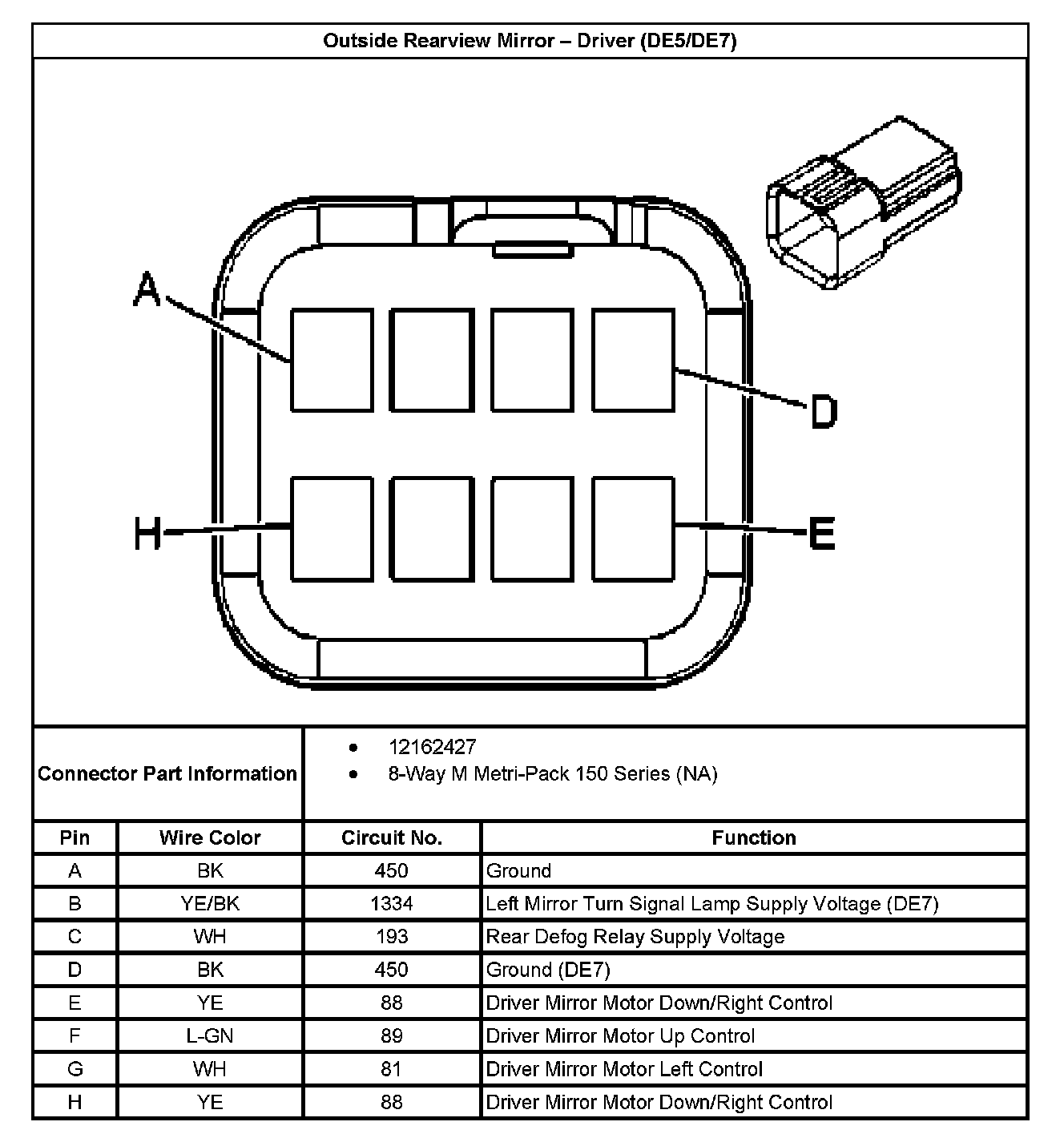 Outside Rearview Mirror - Driver (With RPO Code DE5 And DE7):