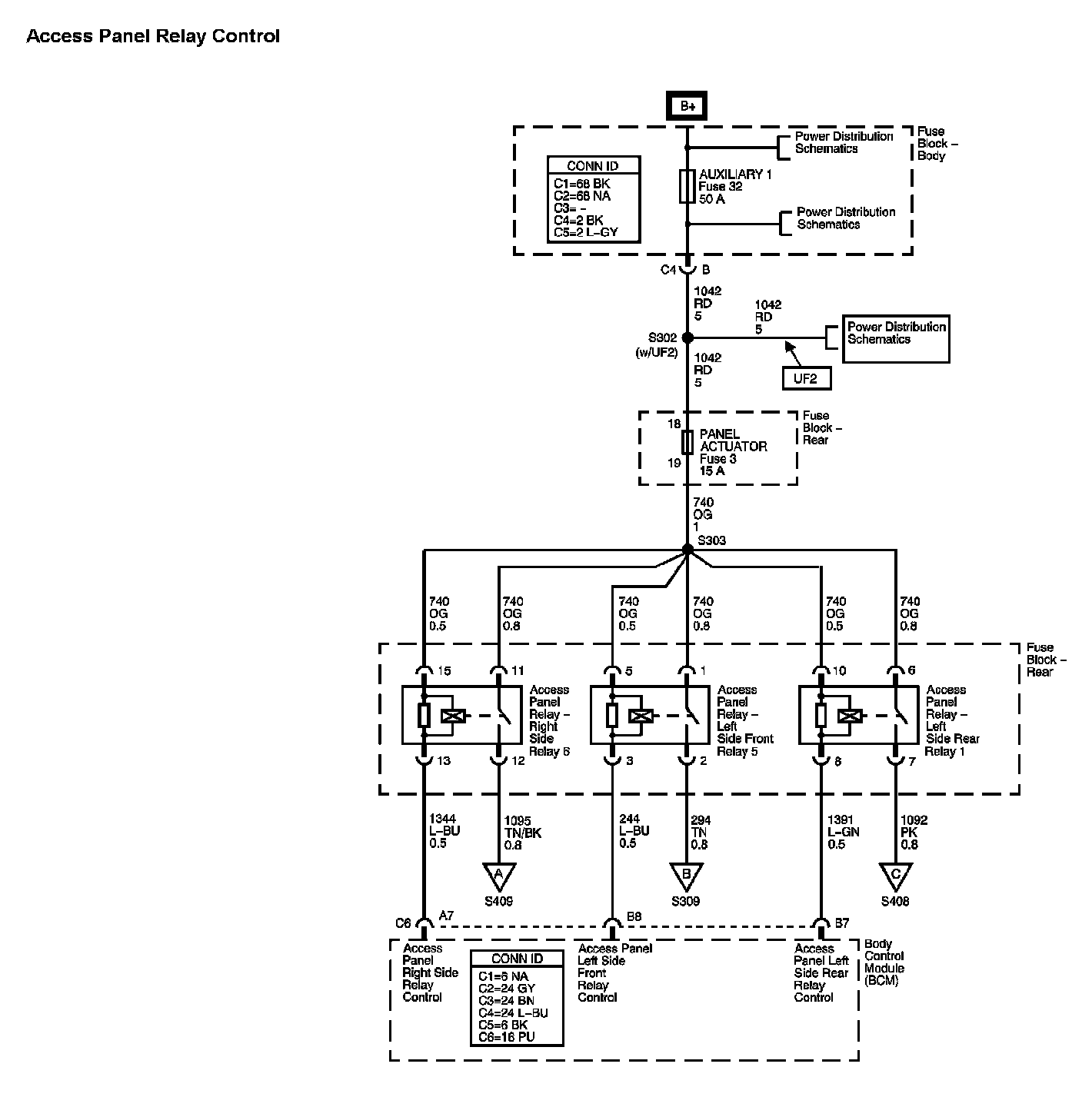 The locations of the Connectors, Grounds, Splices, and Grommets shown within these diagrams can be found via their numbers at Vehicle Locations.