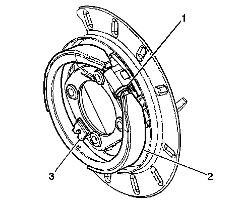 2. Remove the park brake shoe (2).