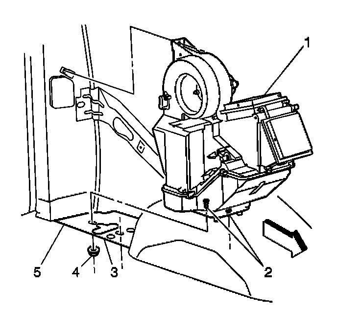 5. Install the one retaining nut to the auxiliary evaporator underbody rear tube assembly to the core.
