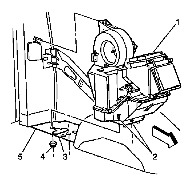 12. Remove the retaining nuts from the underside of the auxiliary HVAC module.