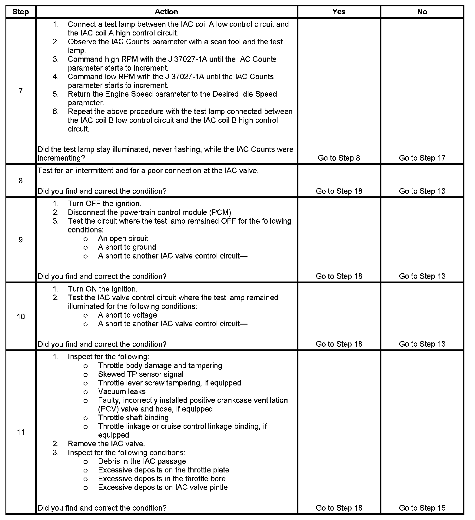 5. This test will determine the ability of the PCM and IAC valve control circuits to control the IAC valve.