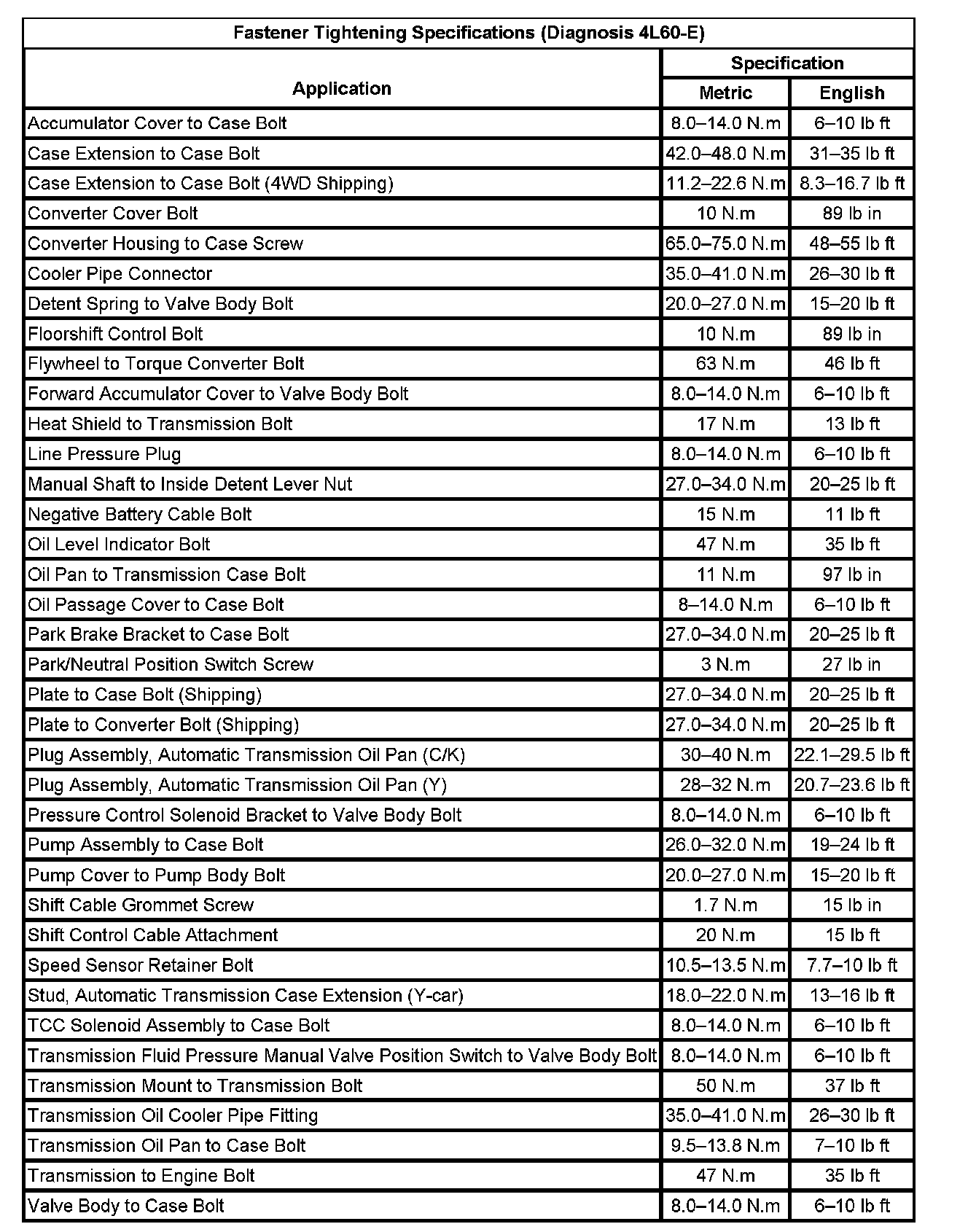 Fastener Tightening Specifications