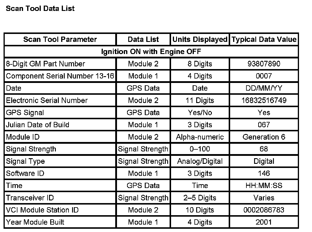 Scan Tool Data List