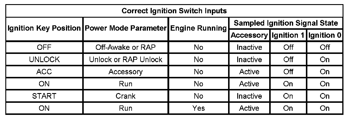 On vehicles that have several control modules connected by serial data circuits, one module is the power mode master (PMM). On this vehicle the PMM is the body control module (BCM). The BCM uses 3 signals from the ignition switch. These are the Ignition 0, Ignition 1, and Accessory.