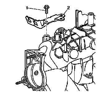 7. Install the accelerator control cable bracket (2) to the intake manifold.