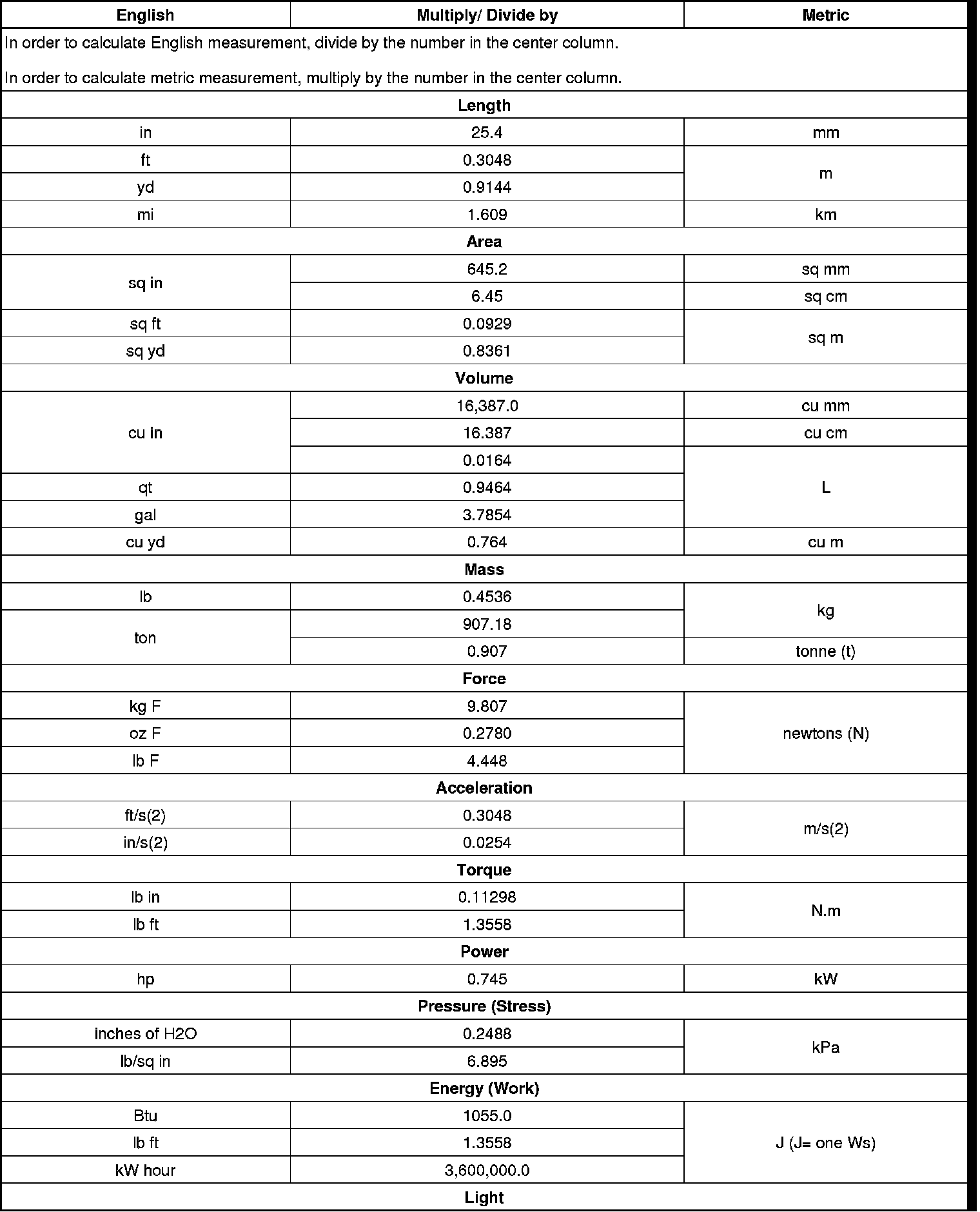 Conversion - English/Metric