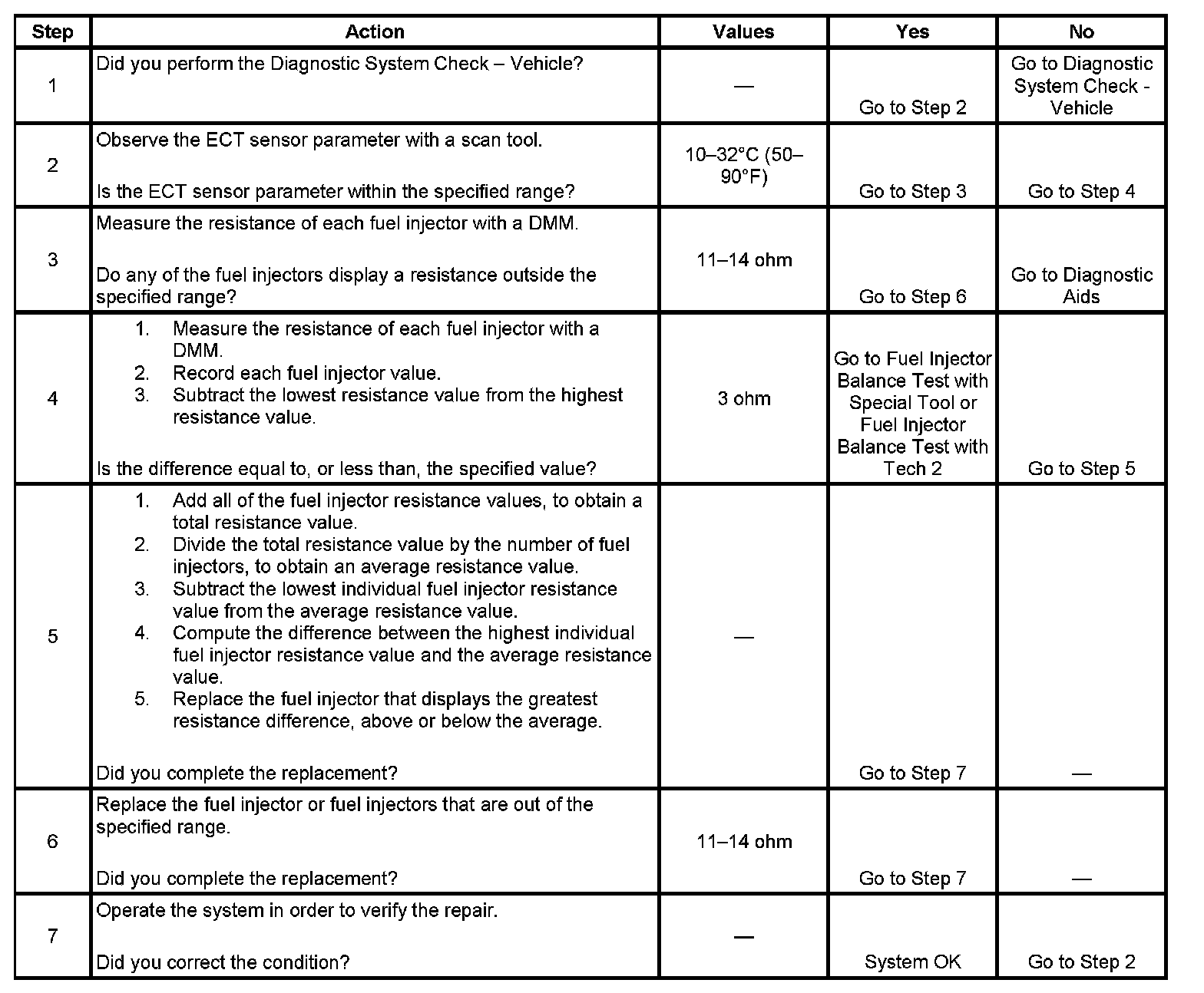 - If the fuel injector coil test does not isolate the condition perform the fuel injector balance test. Refer to Fuel Injector Balance Test with Special Tool or Fuel Injector Balance Test with Tech 2. Component Tests and General Diagnostics Component Tests and General Diagnostics
