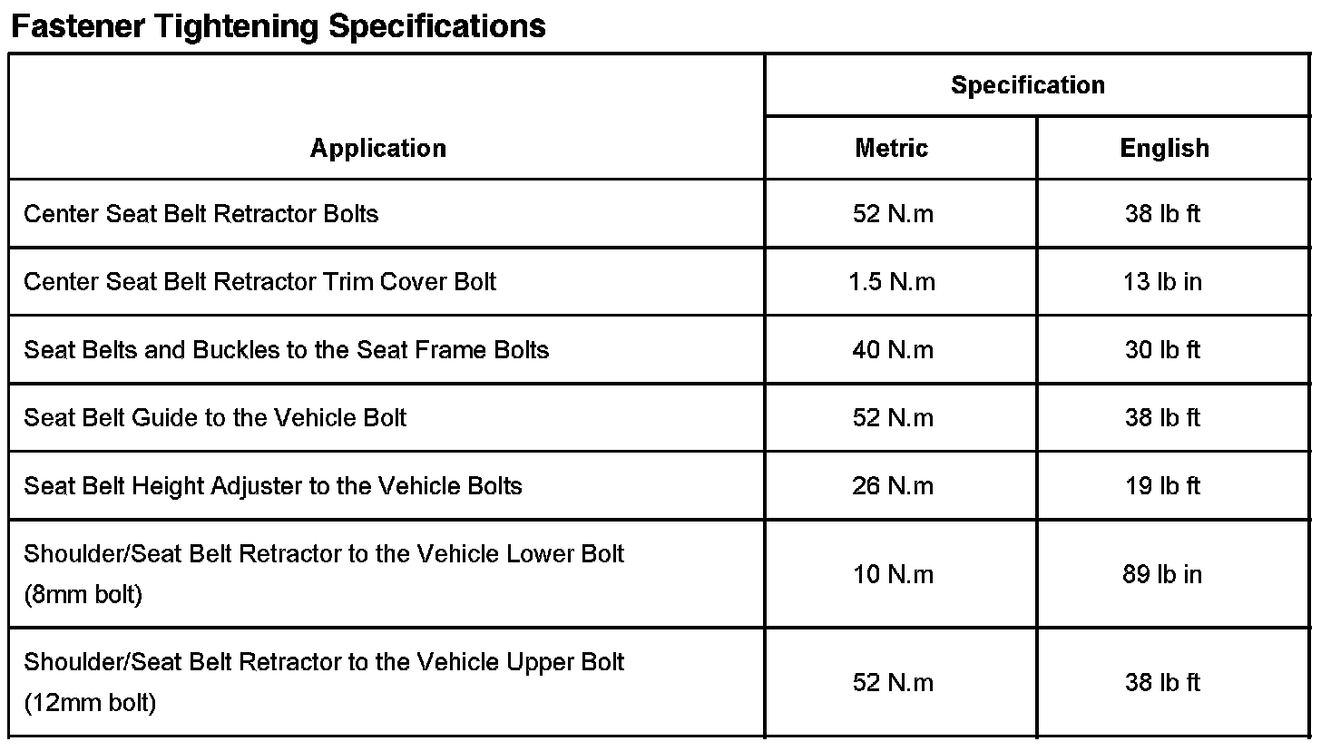 Seat Belt Systems: Specifications