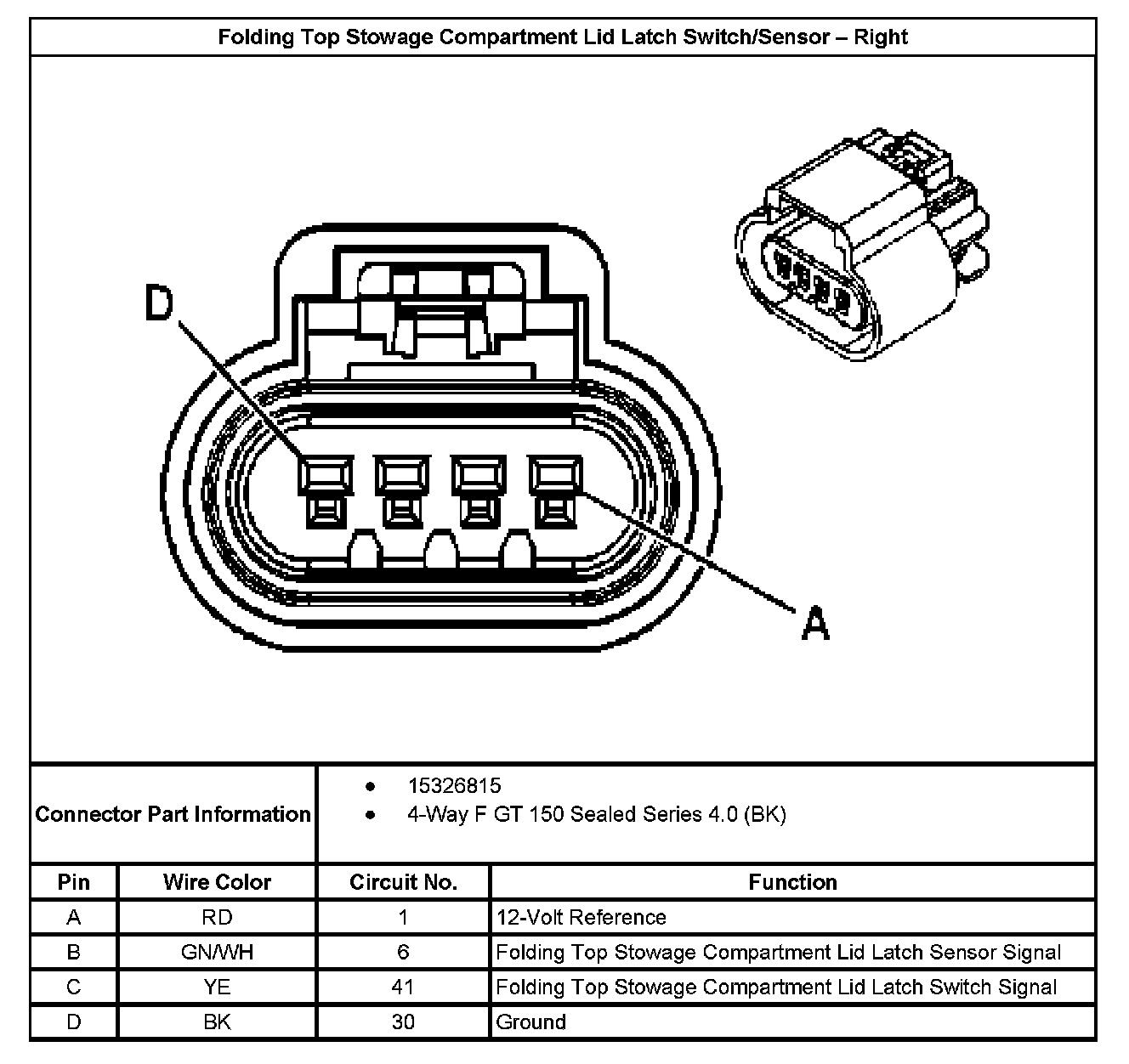 Folding Top Stowage Compartment Lid Latch Switch/Sensor