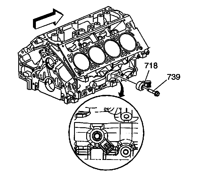 13. Apply threadlock GM P/N 12345382 (Canadian P/N 10953489) to the sides of the NEW front oil gallery plug.
