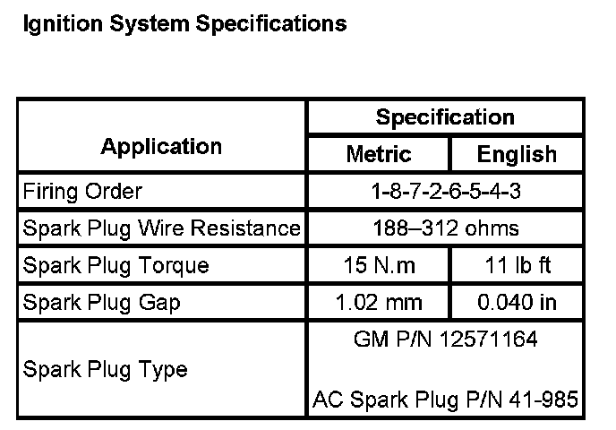 Ignition System: Specifications