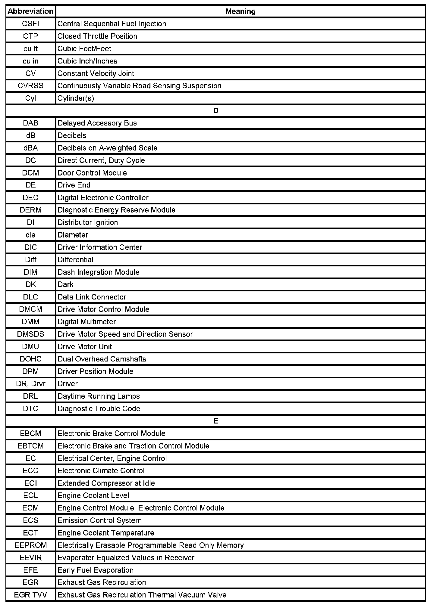 ABBREVIATIONS AND MEANINGS