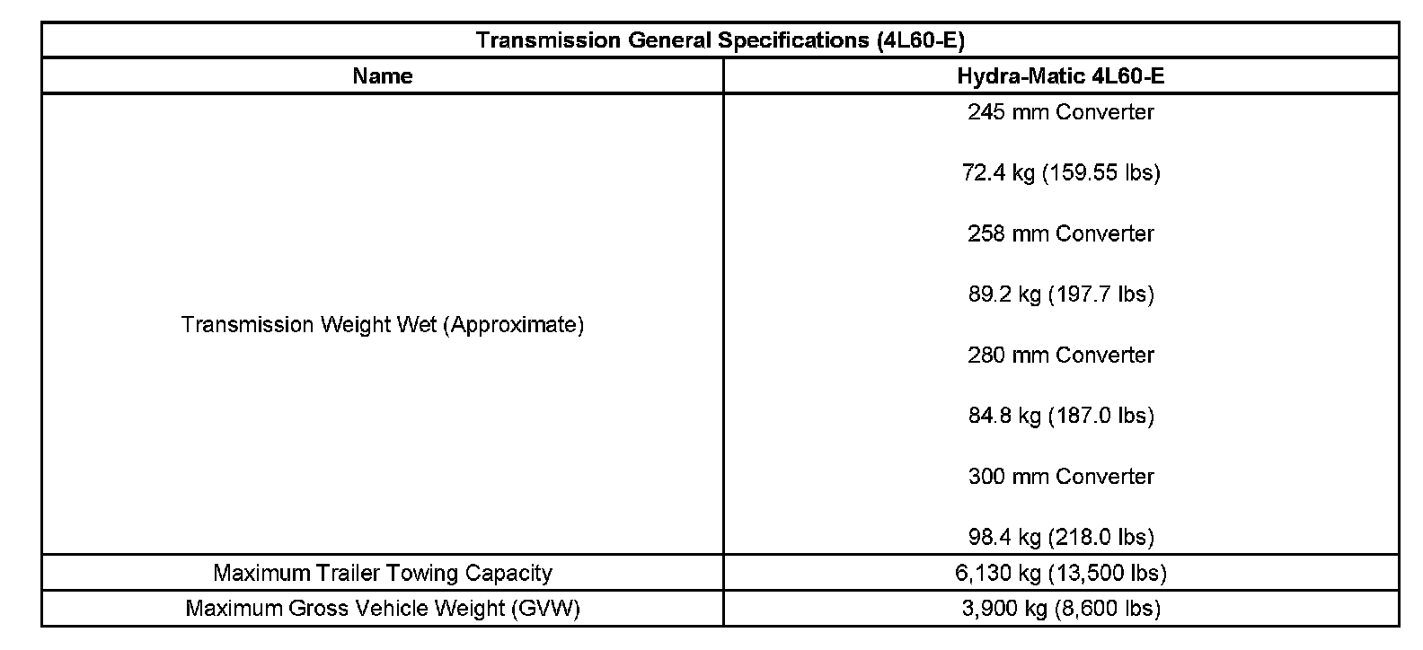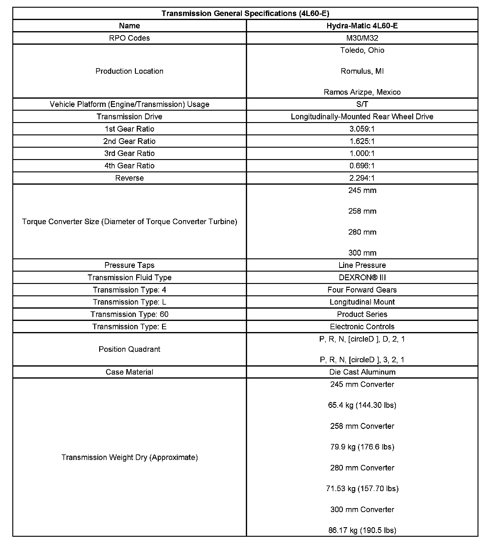 Transmission General Specifications