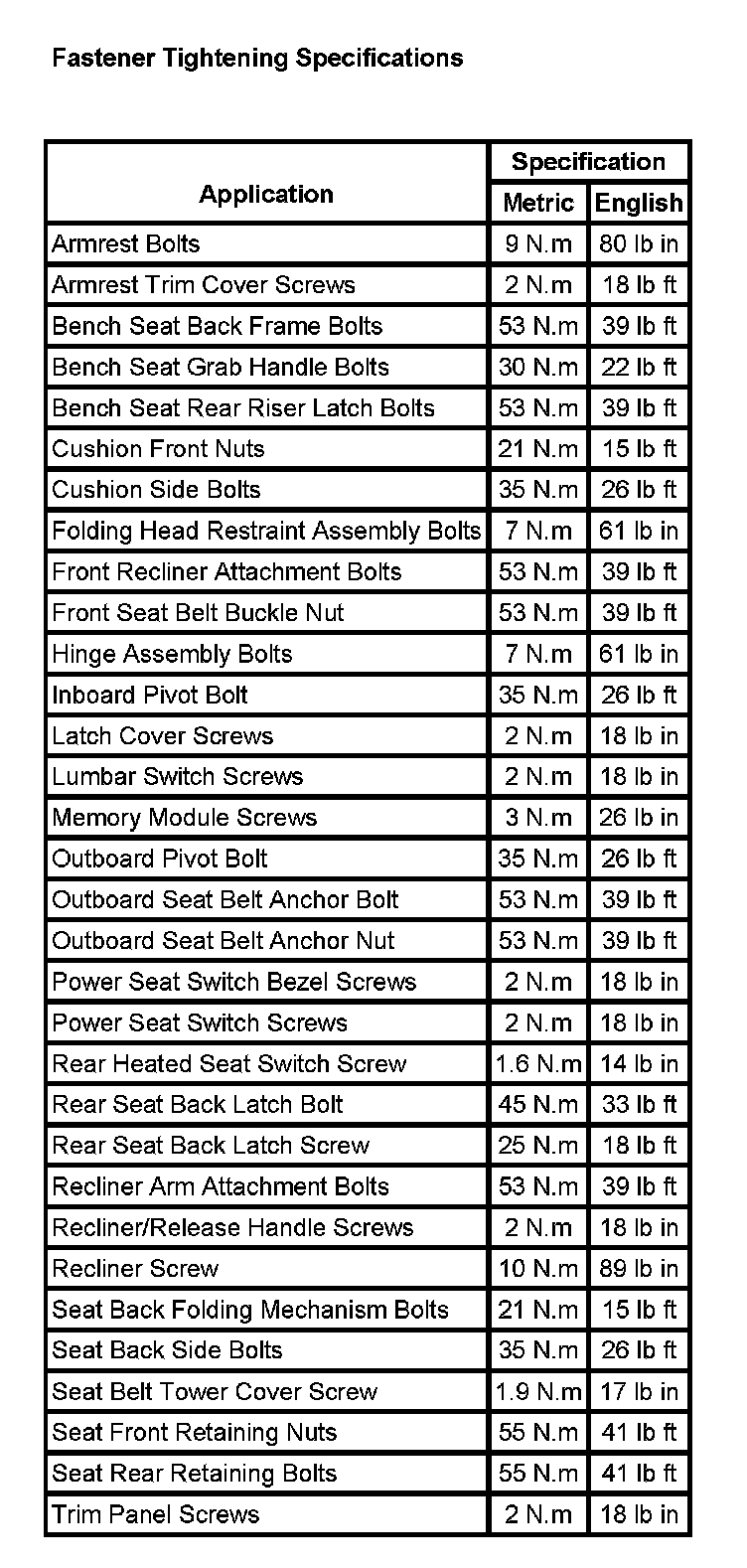Seats: Specifications
