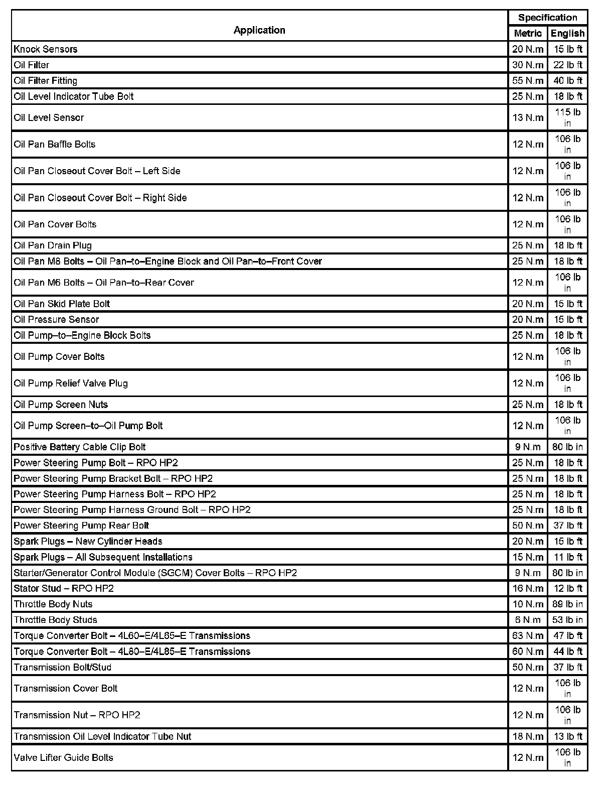 Fastener Tightening Specifications