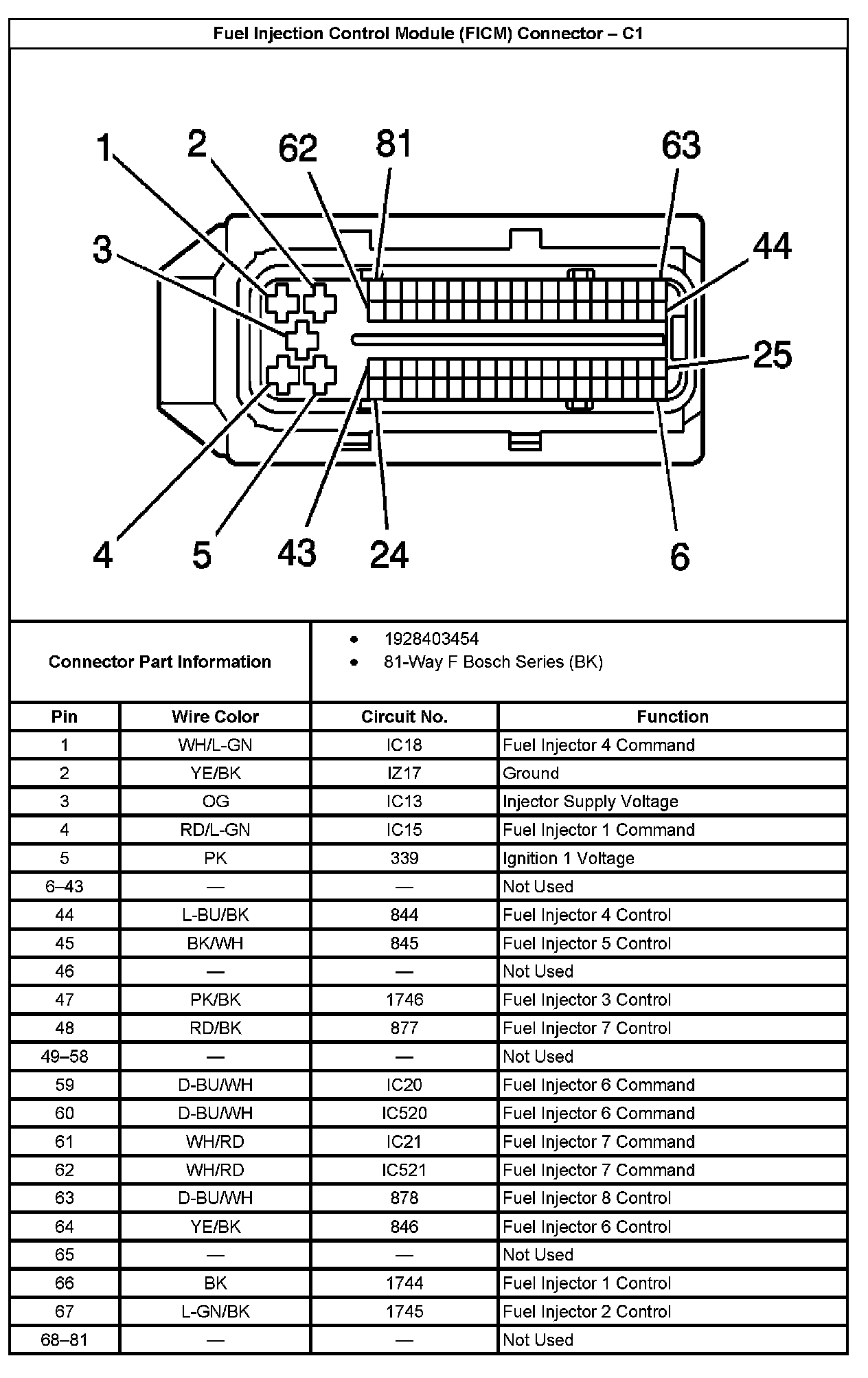 Fuel Injection Control Module (FICM) Connector - C1: