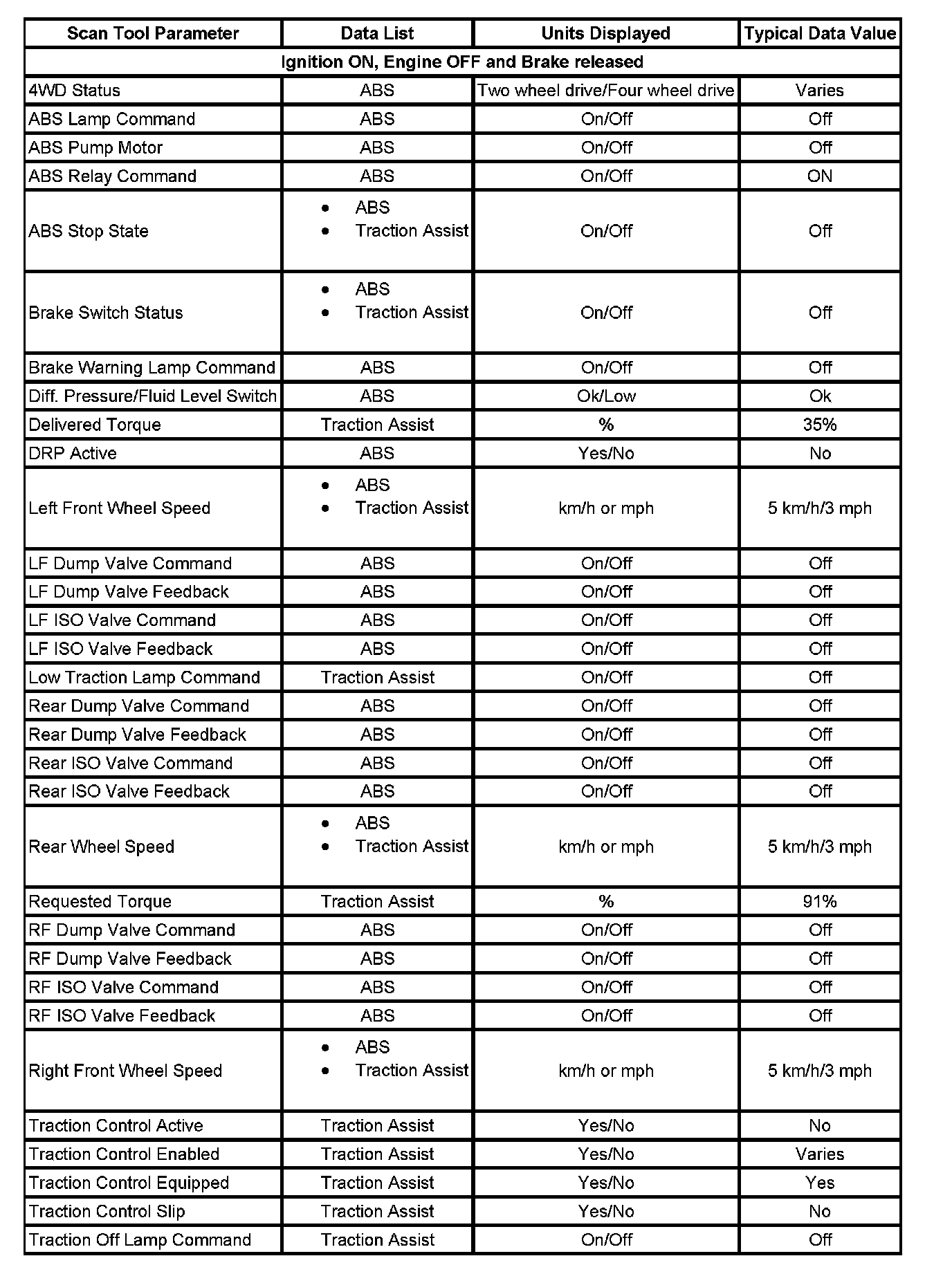 Scan Tool Data List