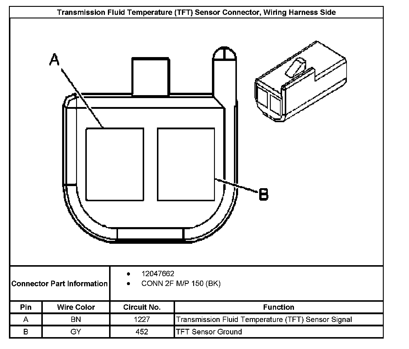 Transmission Fluid Temperature (TFT) Sensor Connector, Wiring Harness Side:
